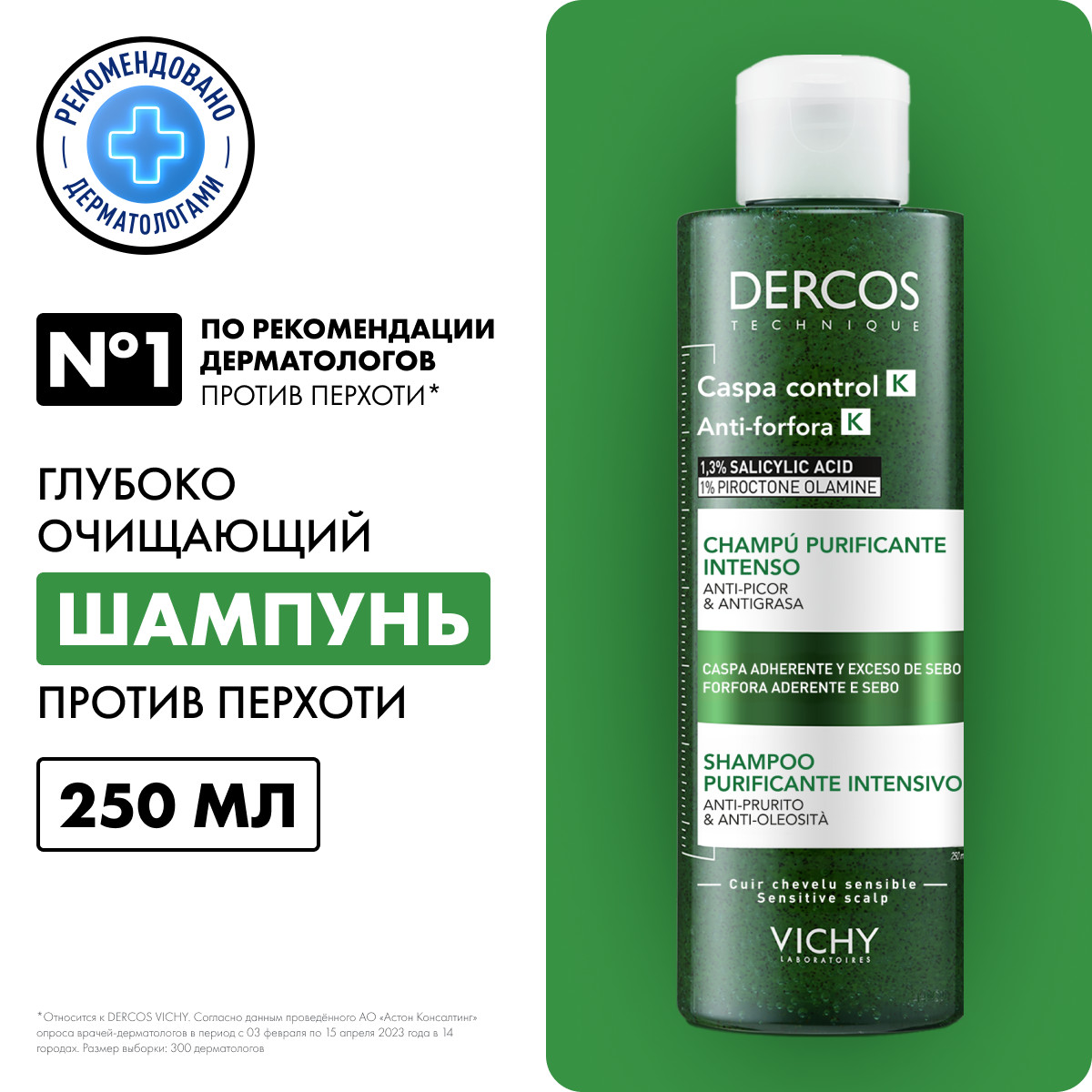 Vichy Dercos Anti-dandruff K shampoo (Виши Деркос Шампунь глубоко очищающий против перхоти К) для жирной и нормальной кожи головы.