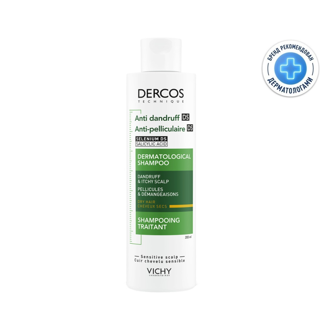 Vichy Dercos Anti-pelliculaire Shampooing traitant Cheveux secs (Виши Деркос Интенсивный шампунь-уход против перхоти для сухих волос) для сухих волос, для кожи головы, склонной к зуду.