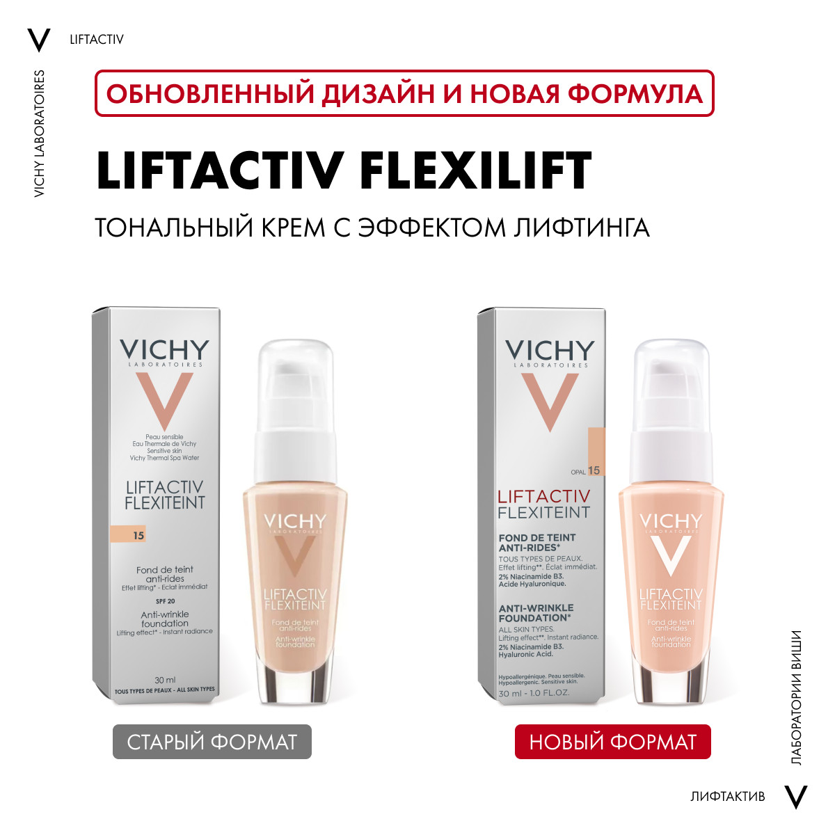 Чтобы скрыть морщинки и другие несовершенства, а также придать коже сияющий вид, используйте Виши ЛифтАктив Флексилифт Крем тональный с эффектом лифтинга. Средство легко распределяется по коже, заметно улучшает ее качество, зрительно уменьшает выраженность морщин. Формула, обогащенная Коллагилом®, подтягивает кожу и омолаживает ее. Vichy Liftactiv Flexilift 15 – это стойкий макияж в течение 8 часов без ощущения «маски» и скатывания средства в морщинках. Тональный крем обеспечивает защиту от ультрафиолетовых лучей (SPF20).