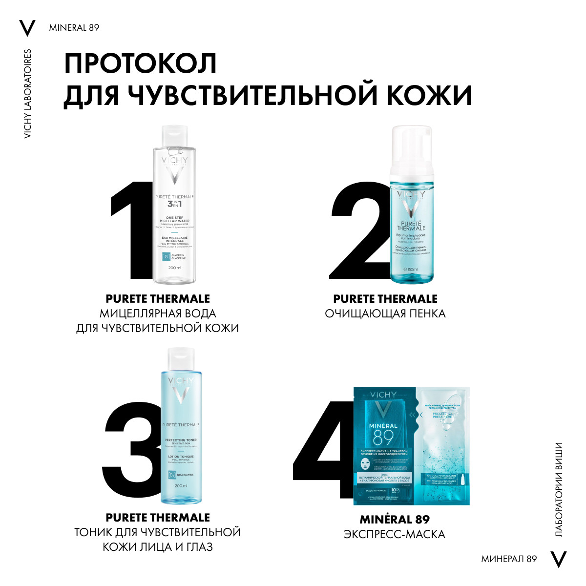 - 89% вулканической термальной воды VICHY стимулирует естественные барьерные функции кожи, поддерживает pH.
