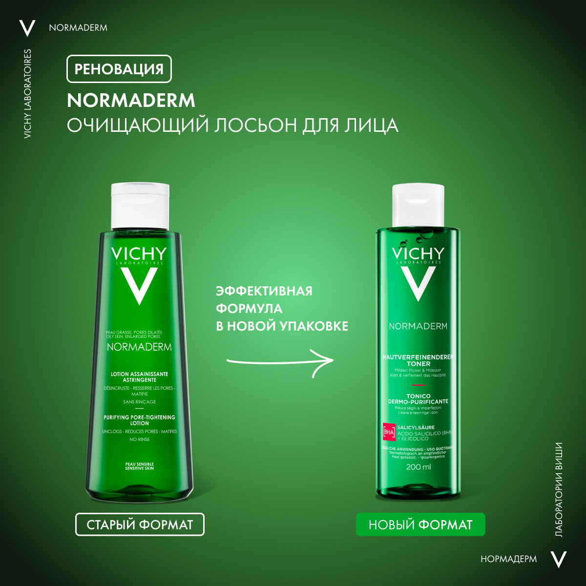 Лосьон Vichy Normaderm Lotion Assainissante Astringente содержит отшелушивающие и успокаивающие компоненты, которые сужают поры и моментально матируют кожу. После первого применения ваша кожа становится бархатистой и сияющей, проблема расширенных пор решена. При регулярном применении Vichy Normaderm Lotion Assainissante Astringente поры очищаются, исчезают воспаления, прыщи и несовершенства кожи. Мягкая формула лосьона подходит для чувствительной кожи и не требует смывания.