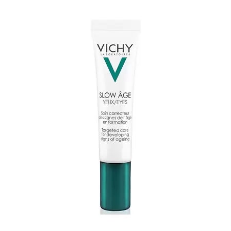 Если у вас появились первые морщинки в области глаз, воспользуйтесь кремом Vichy Slow Age Eyes. Это первый укрепляющий уход от компании Vichy, который корректирует морщины на разных стадиях их формирования. Виши Слоу Эйдж обладает отличными увлажняющими, тонизирующими и питательными свойствами. Средство устраняет мешки и темные круги под глазами, корректирует первые морщинки и линии обезвоженности, дарит коже сияющий здоровый вид и молодость. Укрепляющий эффект достигается благодаря комбинации антиоксидантов, пробиотиков и кофеина.