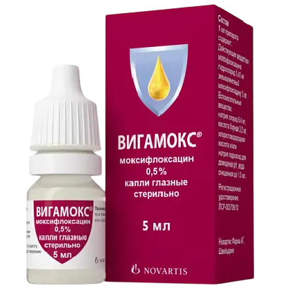 При местном применении происходит системное всасывание моксифлоксацина: максимальная концентрация моксифлоксацина в плазме (Cmax) составляет 2,7 нг/мл, величина AUC - 45 нг*ч/мл. Данные значения примерно в 1600 раз и в 1000 раз меньше, чем Cmax и AUC после применения терапевтической дозы моксифлоксацина 400 мг перорально. Период полувыведения Т1/2 моксифлоксацина из плазмы составляет около 13 часов.