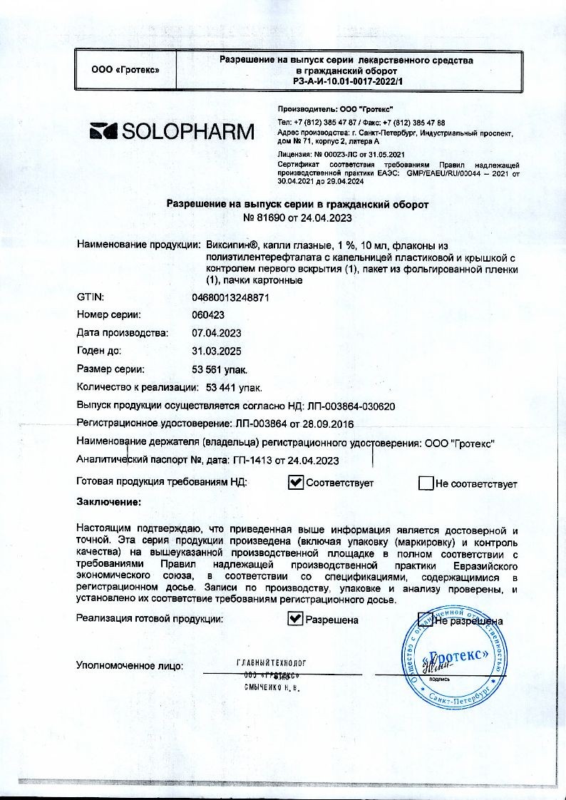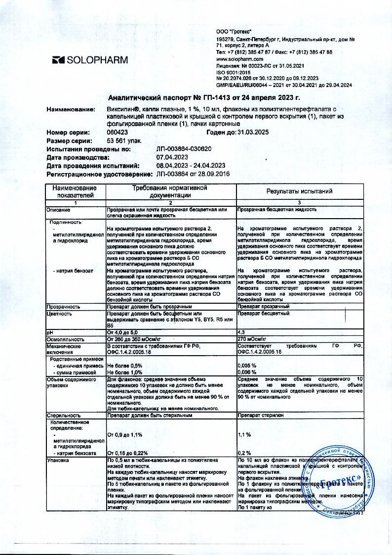 Необходимо избегать контактов наконечника открытого флакона с поверхностью глаза и руками.