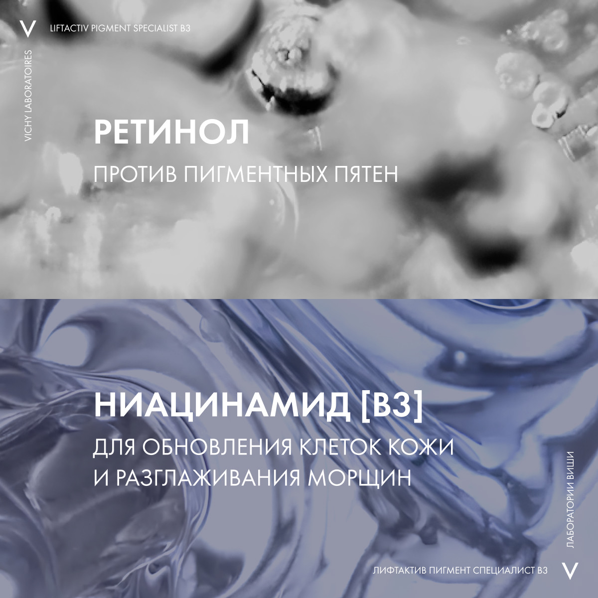 Инновация* от Vichy: Новый ночной крем с ретинолом эффективно борется с пигментацией и морщинами. Благодаря содержанию мощных активных ингредиентов: чистого ретинола и 4% ниацинамида (витамина B3) – крем ускоряет обновление клеток в ночное время. День за днем пигментные пятна заметно сокращаются, кожа становится более упругой и сияющей, ее тон выравнивается.