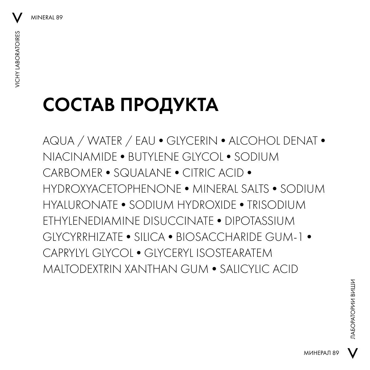 AQUA / WATER / EAU, GLYCERIN, ALCOHOL DENAT, NIACINAMIDE, BUTYLENE GLYCOL, SODIUM CARBOMER, SQUALANE, CITRIC ACID, HYDROXYACETOPHENONE, MINERAL SALTS, SODIUM HYALURONATE, SODIUM HYDROXIDE, TRISODIUM ETHYLENEDIAMINE DISUCCINATE, DIPOTASSIUM GLYCYRRHIZATE, SILICA, BIOSACCHARIDE GUM-1, CAPRYLYL GLYCOL, GLYCERYL ISOSTEARATE, MALTODEXTRIN XANTHAN GUM, SALICYLIC ACID.