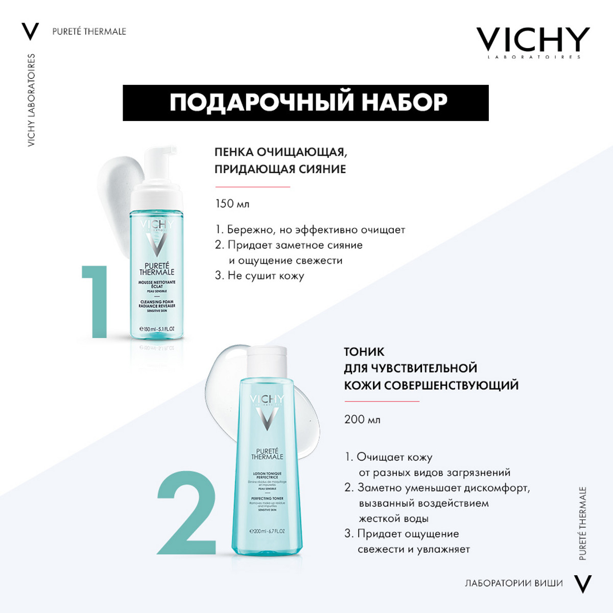 VICHY PURETE THERMALE Совершенствующий тоник 200 мл: Совершенствующий тоник завершает ежедневную процедуру очищения, освежая чувствительную кожу. Бережно и эффективно удаляет остатки макияжа, не оставляя липкой пленки. Активизирует доступ воздуха к клеткам и выводит токсины.