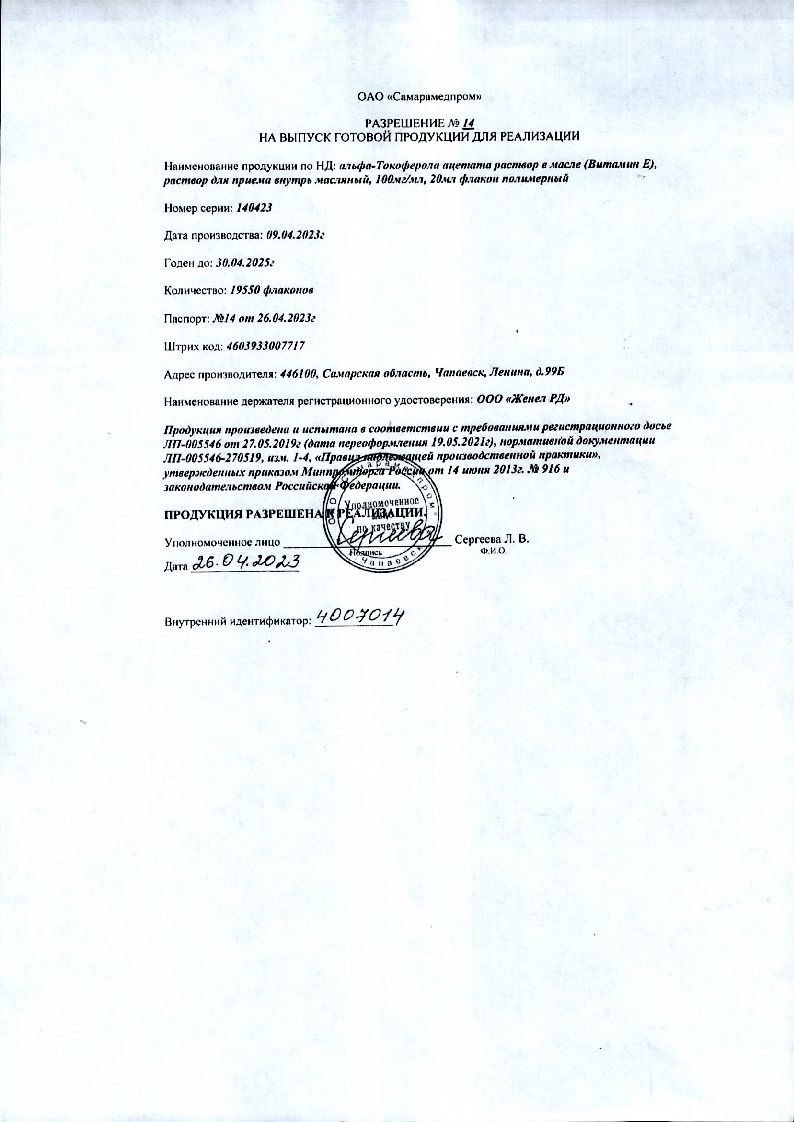 Дозы и длительность лечения гиповитаминоза Е индивидуальны и зависят от тяжести состояния. Следует учитывать, что 1 кап 10-30 % 1 раствора из глазной пипетки содержит около 2 и 6.5 мг. токоферола ацетата соответственно.