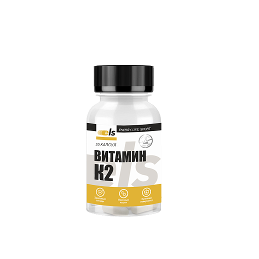 Целлюлоза микрокристаллическая (носитель), менахинон (Витамин K2), кальциевая соль стеариновой кислоты (агент антислеживающий), тальк (агент антислеживающий), оболочка капсулы (желатин, титана диоксид (краситель).