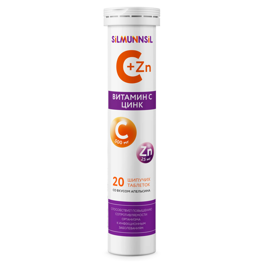 Аскорбиновая кислота (Витамин С), цинка аминокислотный хелатный комплекс (глицинат), декстроза, лимонная кислота, натрия гидрокарбонат, натрия карбонат, сукралоза (подсластитель), полиэтиленгликоль 4000, ароматизатор «Апельсин».