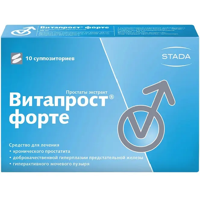 Витапрост® Форте способствует нормализации параметров предстательной железы и эякулята. Уменьшает боль и дискомфорт, устраняет дизурические явления, улучшает копулятивную функцию. Препарат обладает противовоспалительным и антиагрегационным действием, стимулирует мышцы мочевого пузыря.