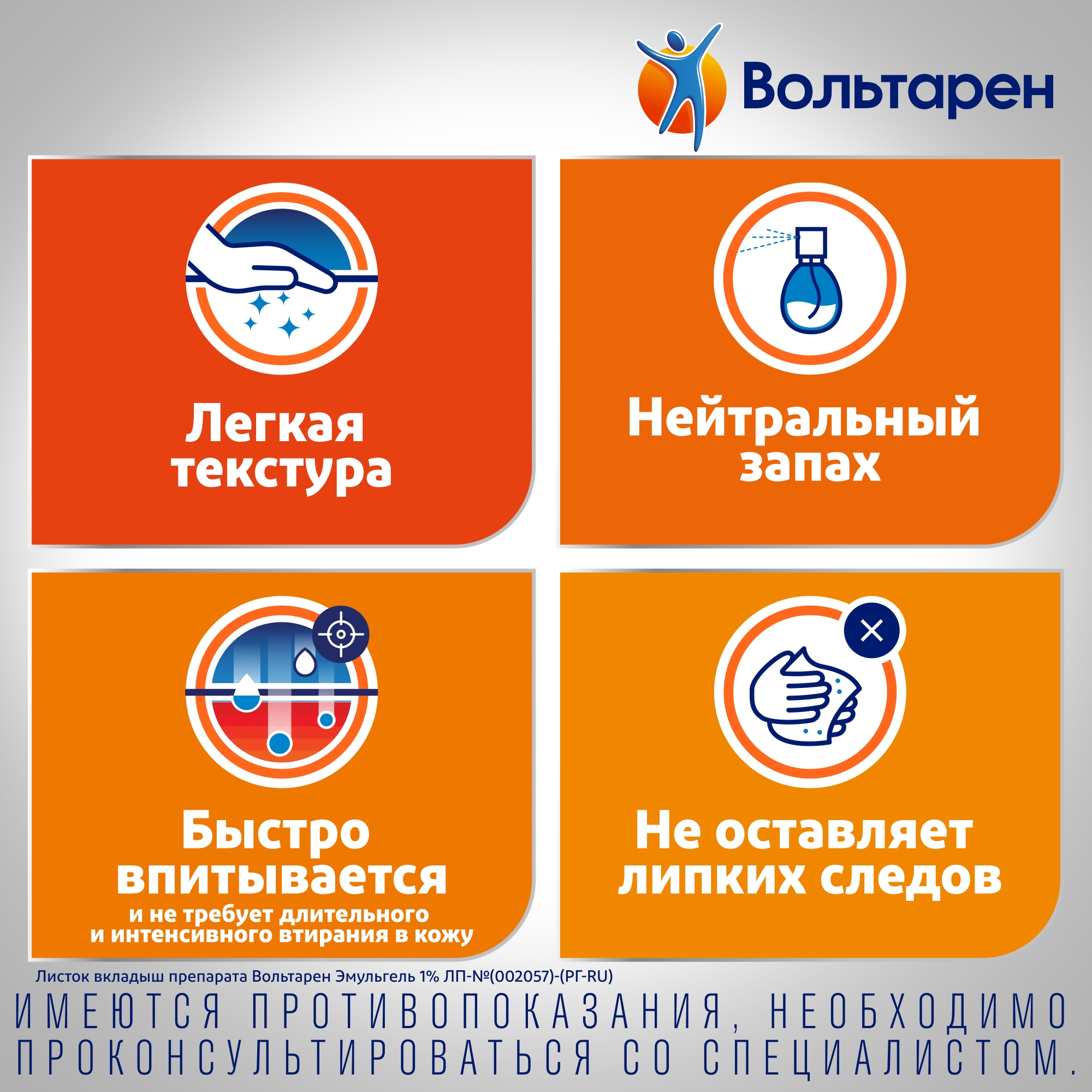 Благодаря своей водно-спиртовой основе Вольтарен® Эмульгель® оказывает успокаивающий и охлаждающий эффект.