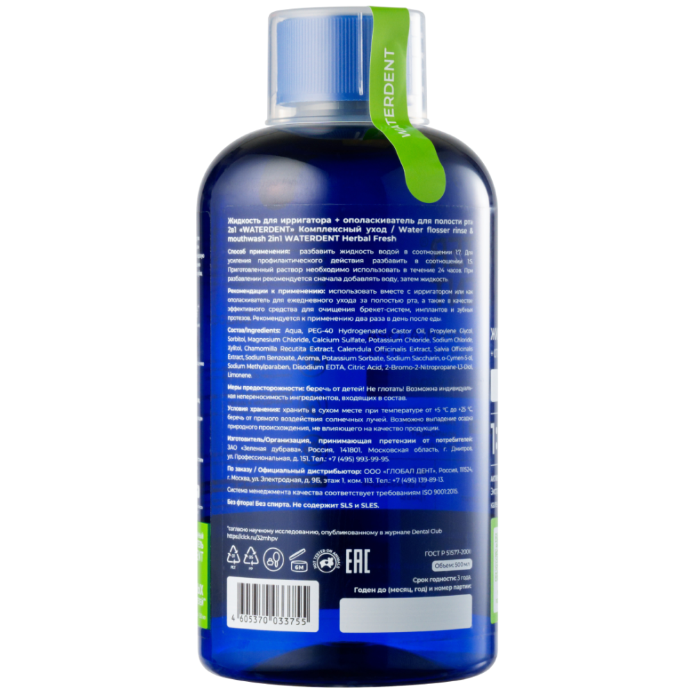 WATERDENT ЖИДКОСТЬ ДЛЯ ИРРИГАТОРА+ОПОЛАСКИВАТЕЛЬ ДЛЯ ПОЛОСТИ РТА 2В1 КОМПЛЕКСНЫЙ УХОД /ВКУС ОСВЕЖАЮЩИЕ ТРАВЫ/КОНЦЕНТРАТ 1:7 - ежедневный уход.