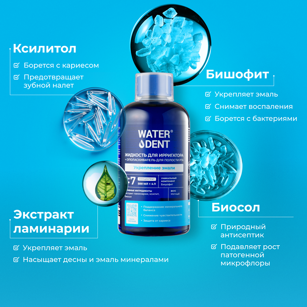 Жидкость направлена на укрепление эмали и снижение чувствительности зубов. Обладает антисептическим и укрепляющим свойствами. Освежает дыхание. Идеальное решение при наличии брекетов, протезов, имплантов. Может использоваться как отдельный продукт в качестве ополаскивателя.