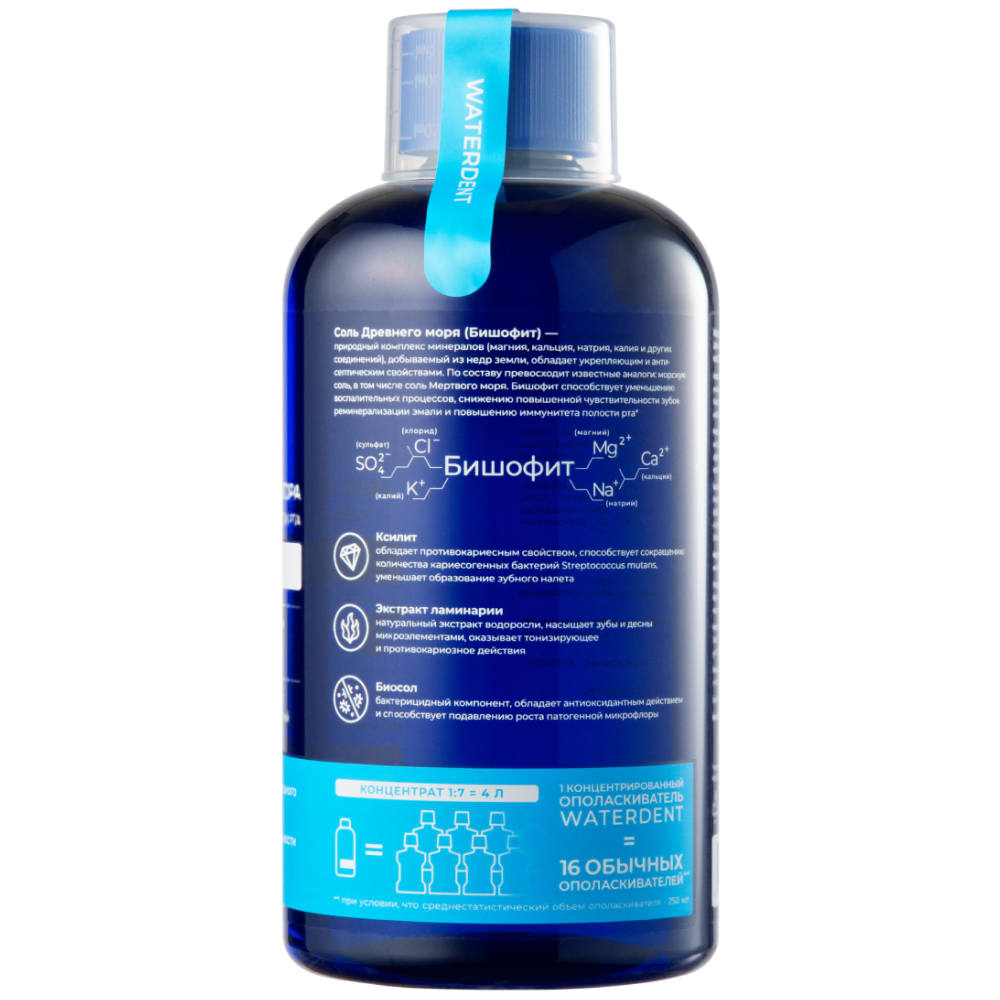 aqua, propylene glycol, magnesium chloride, calcium sulfate, potassium chloride, sodium chloride, sorbitol, peg-40 hydrogenated castor oil, хylitol, laminaria digitata extract, mentha piperita oil, aroma, sodium benzoate, о-cymen-5-оl, sodium saccharin, sodium methylparaben, citric acid, 2-bromo-2-nitropropane-1,3-diol, limonene