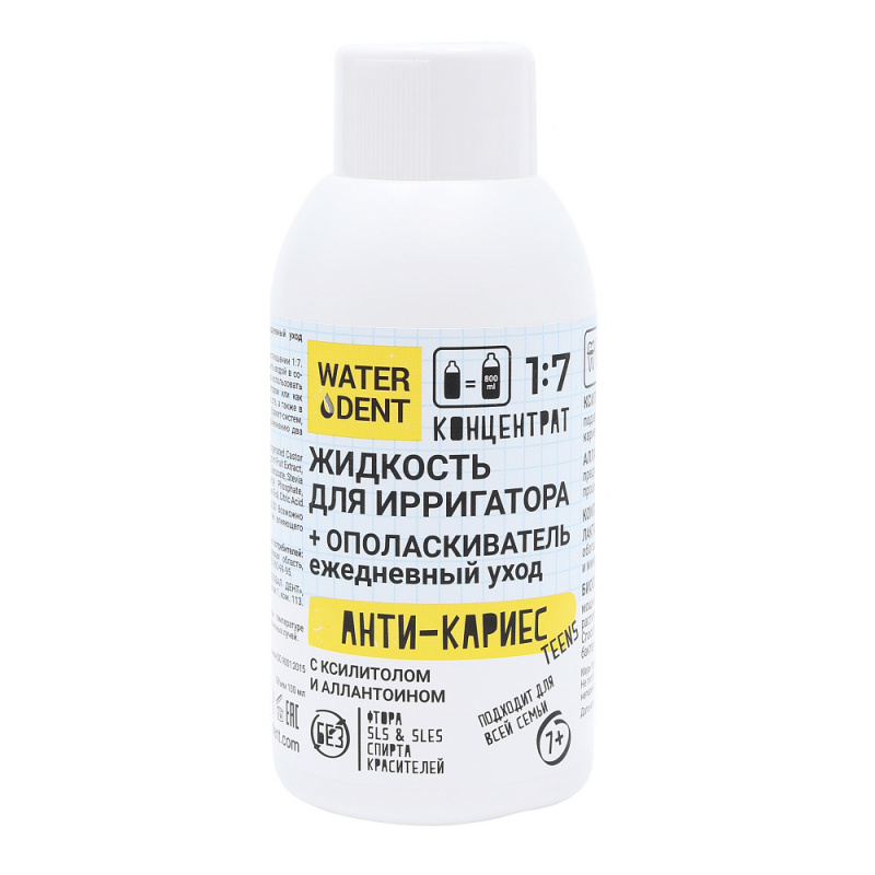 Жидкость для ирригатора "Анти-кариес". Идеальное средство для поддержания гигиены полости рта при наличии брекетов у подростков, а также для защиты от кариеса. Подходит для всей семьи начиная с 7 лет.