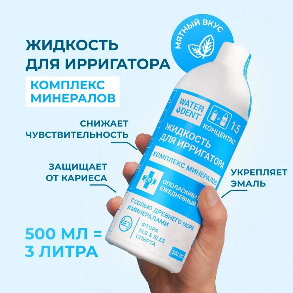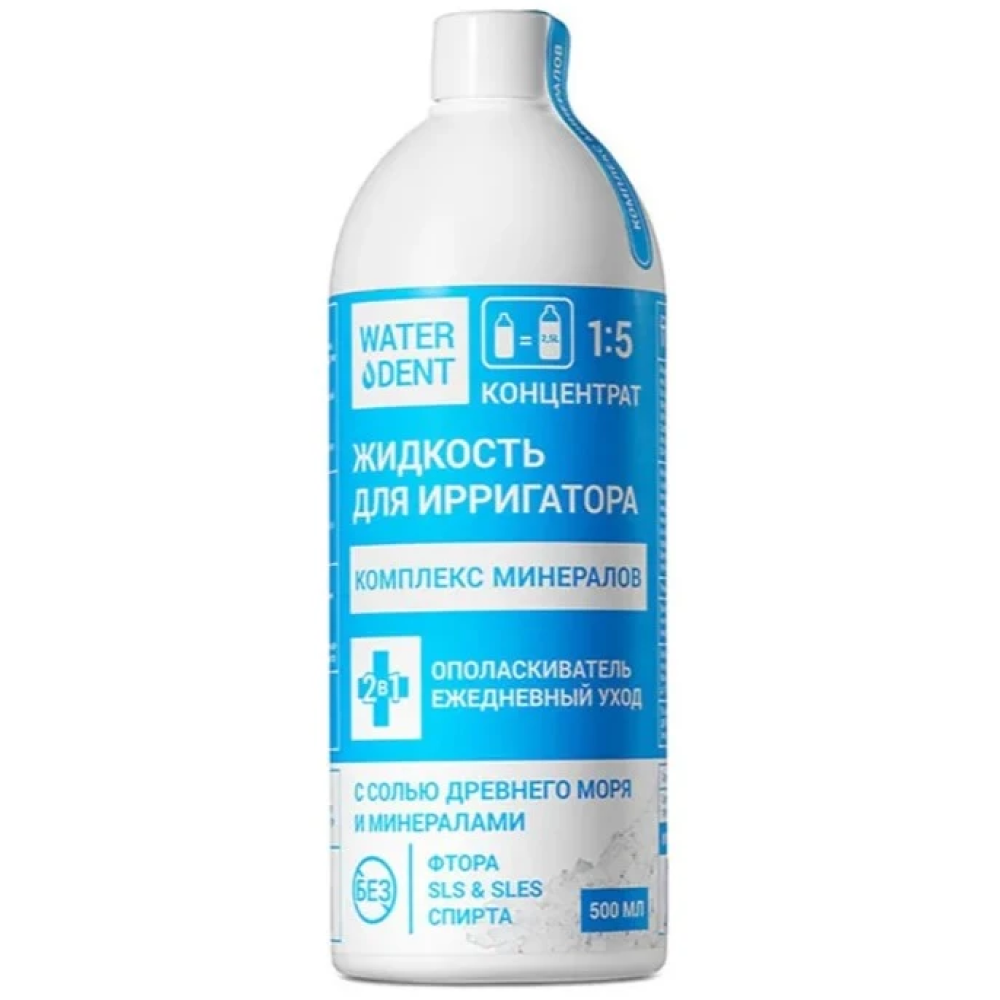 Жидкость для ирригатора “Комплекс Минералов” способствует уменьшению чувствительности зубов и укреплению эмали