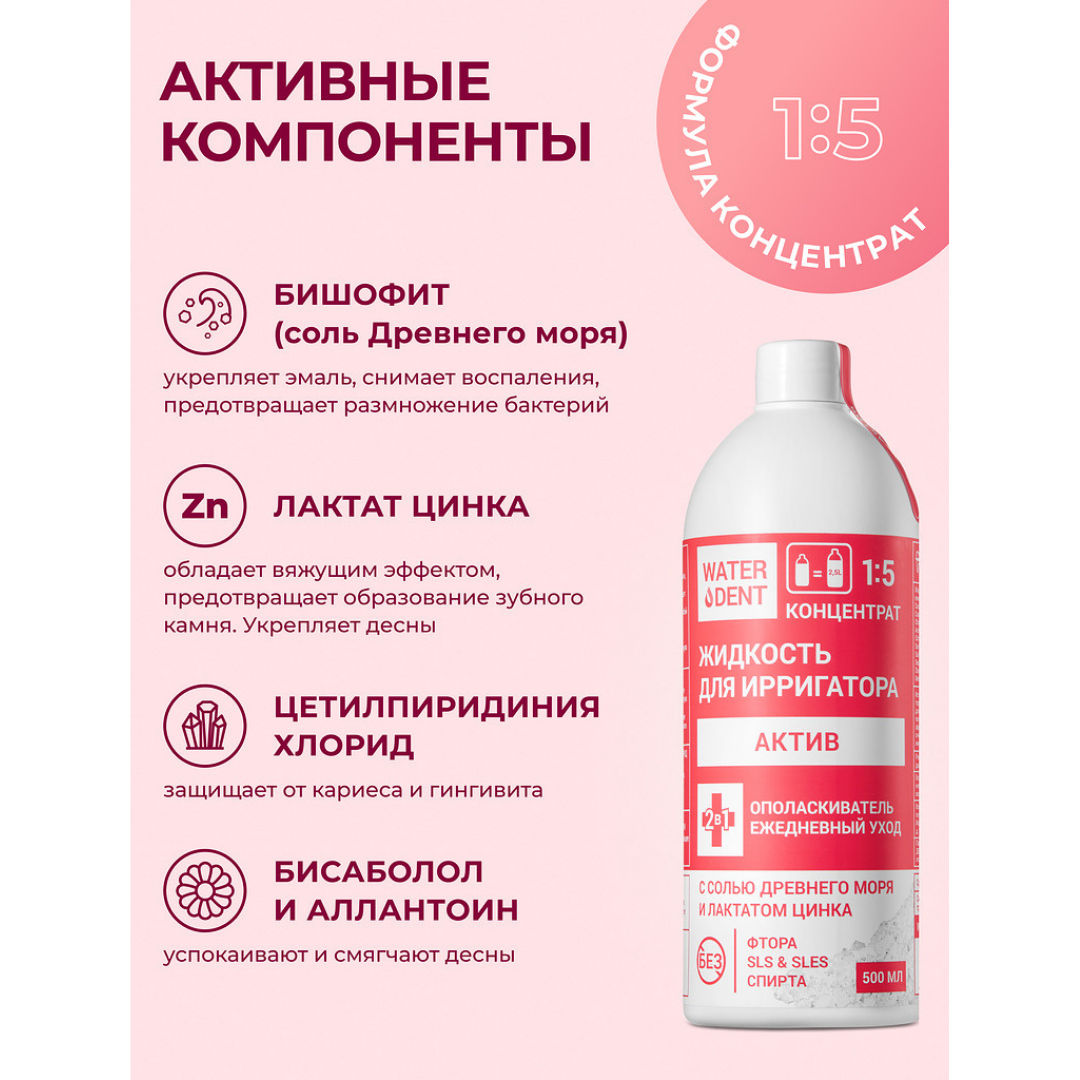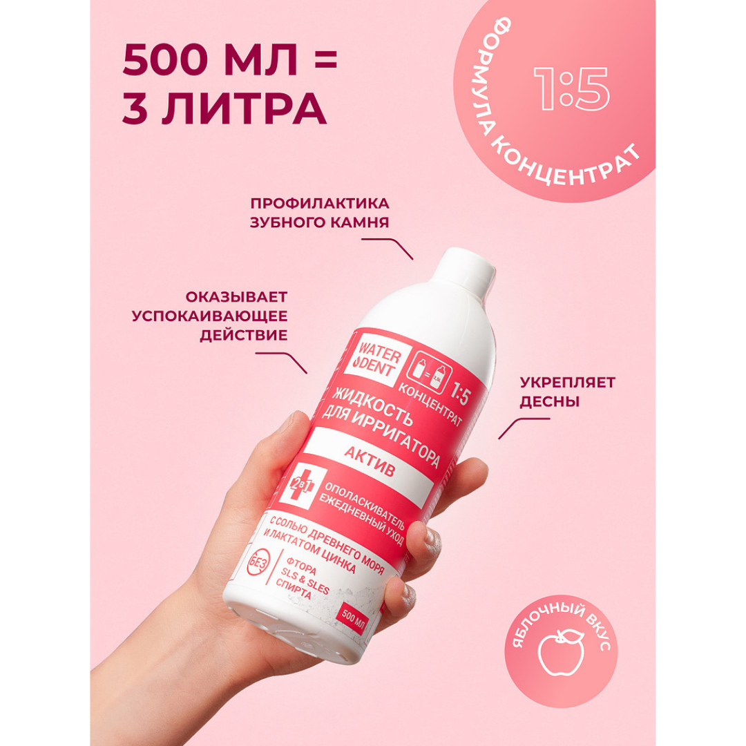 Для полноценного ухода за зубами и деснами может быть недостаточно одних щетки и пасты. Ополаскиватель Waterdent будет замечательным дополнением к вашему ежедневному уходу. Его можно использовать как отдельный продукт, а можно заливать в ирригатор для качественного очищения межзубных промежутков.