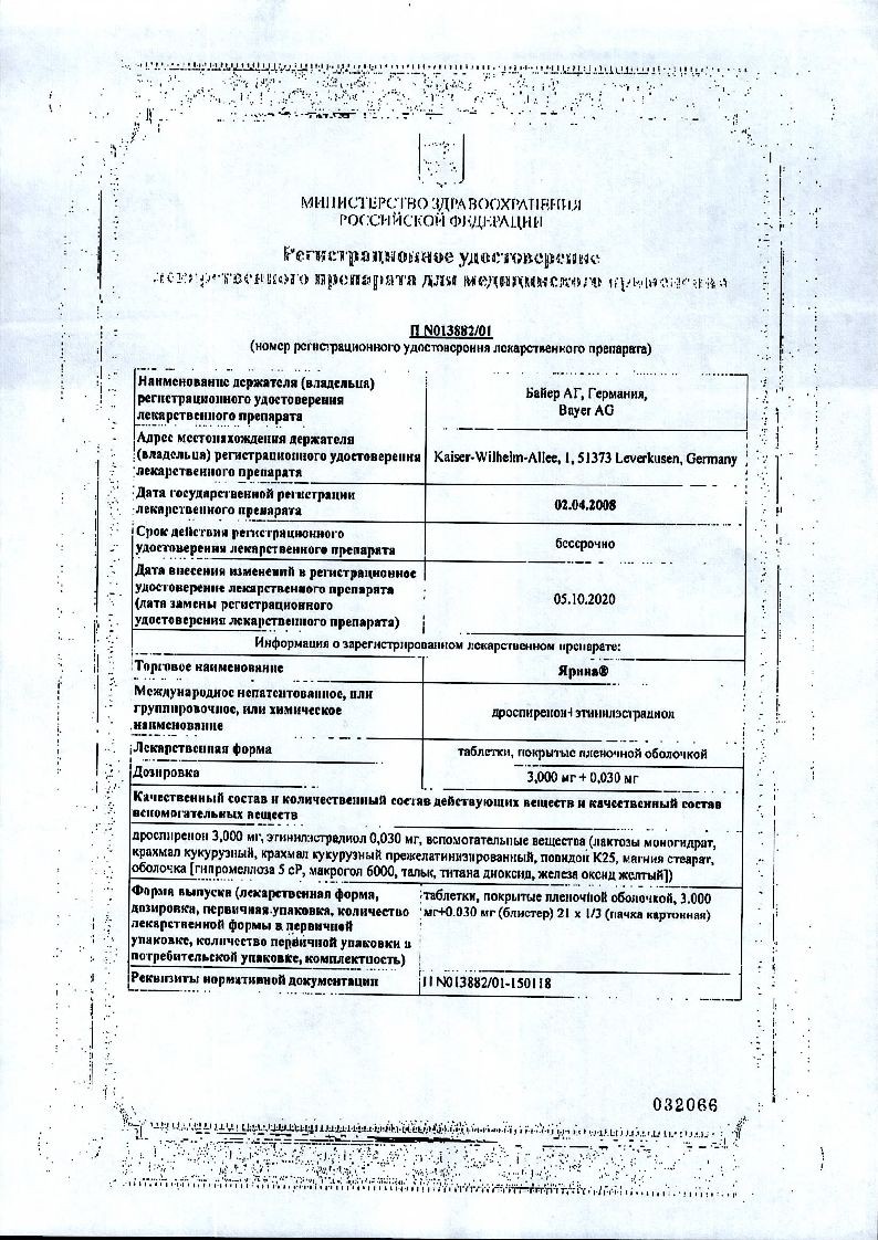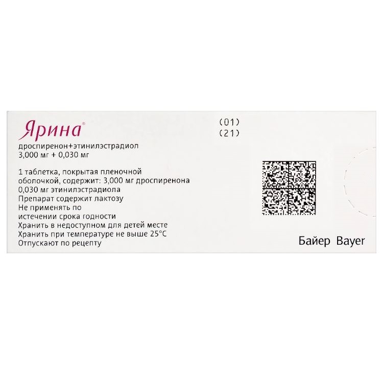Активные вещества: дроспиренона 3 мг, этинилэстрадиола 0,03 мг;