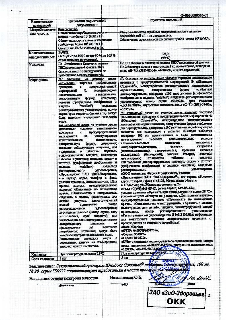 Взрослым и детям старше 8 лет с массой тела более 50 кг назначают 200 мг в 1-2 приема в первый день лечения, далее по 100 мг ежедневно. В случаях тяжелых инфекций Юнидокс назначают в дозе 200 мг ежедневно в течение всего лечения.
