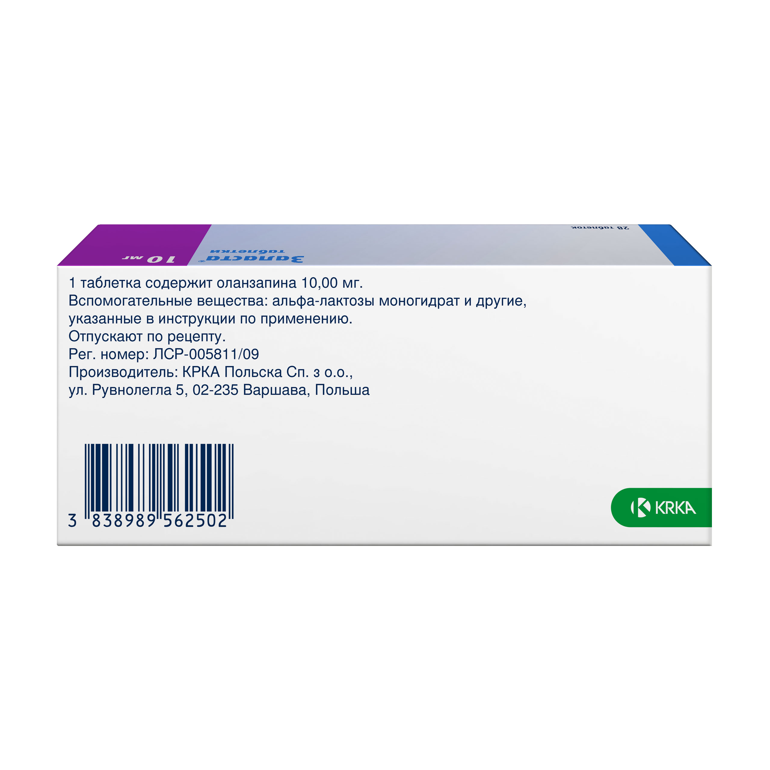 Шизофрения: рекомендуемая начальная доза оланзапина составляет 10 мг 1 раз в сутки.