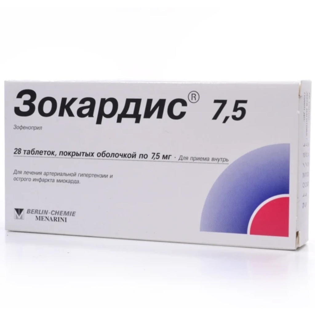 Активное вещество: зофеноприл кальция 7.5 мг.