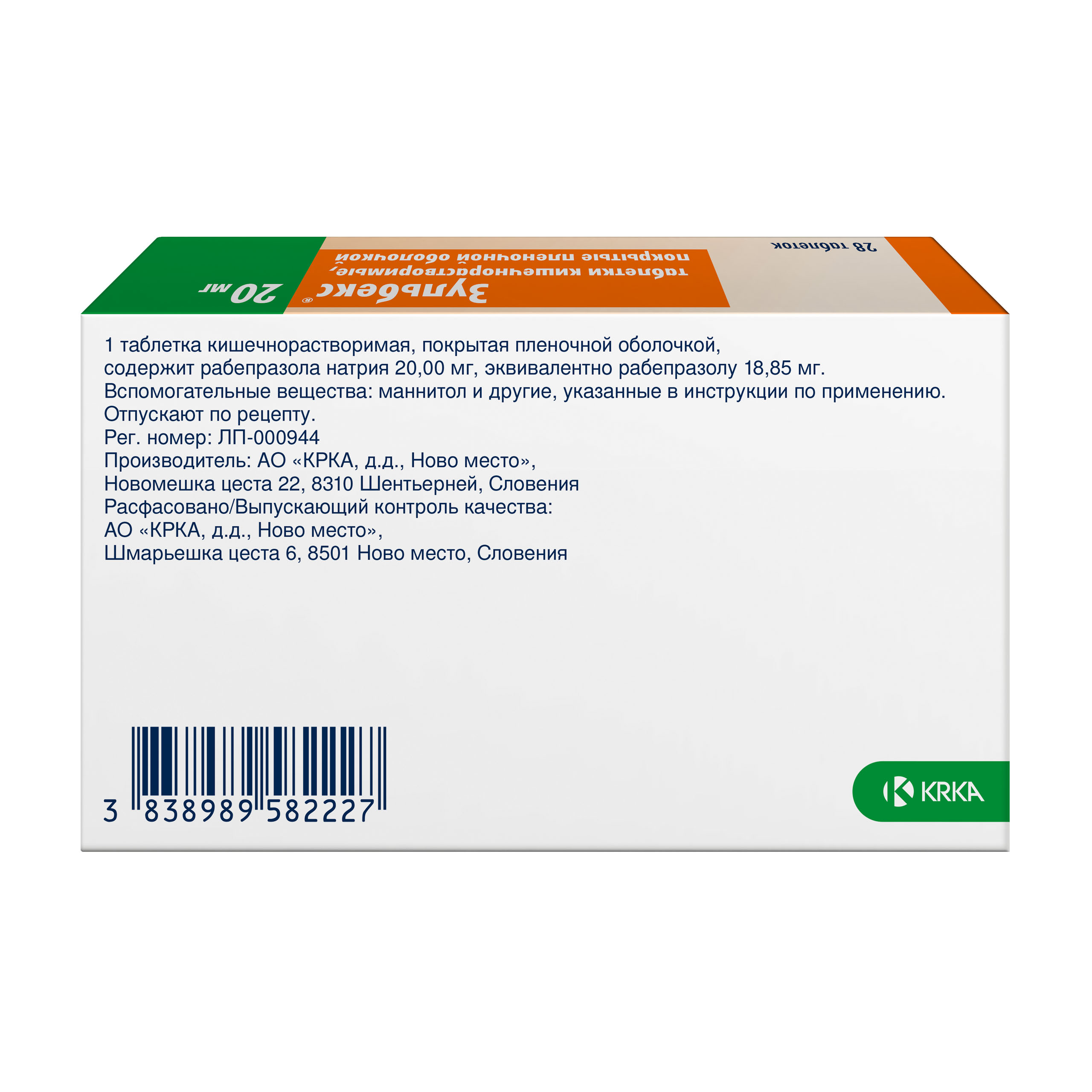 После приема внутрь всасывается из ЖКТ. При дозе 20 мг Cmax достигается через 3.5 ч. Изменения Cmax и AUC носят линейный характер (в диапазоне доз от 10 до 40 мг). Абсолютная биодоступность составляет около 52% вследствие эффекта "первого прохождения" через печень. Биодоступность рабепразола не увеличивается при многократном приеме.