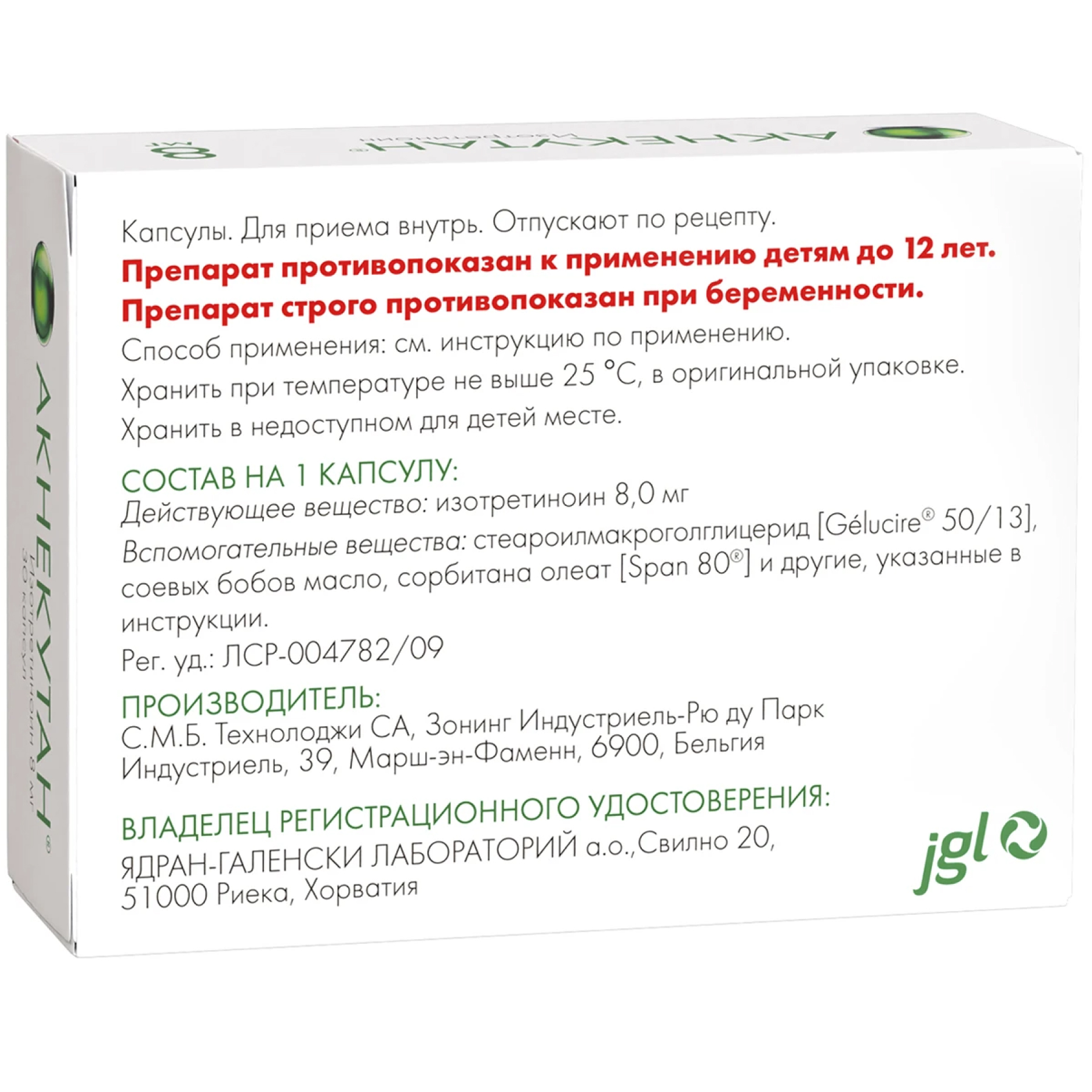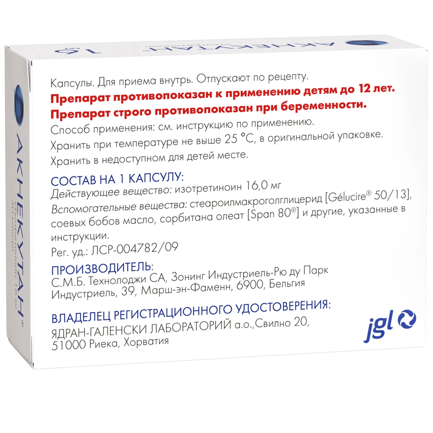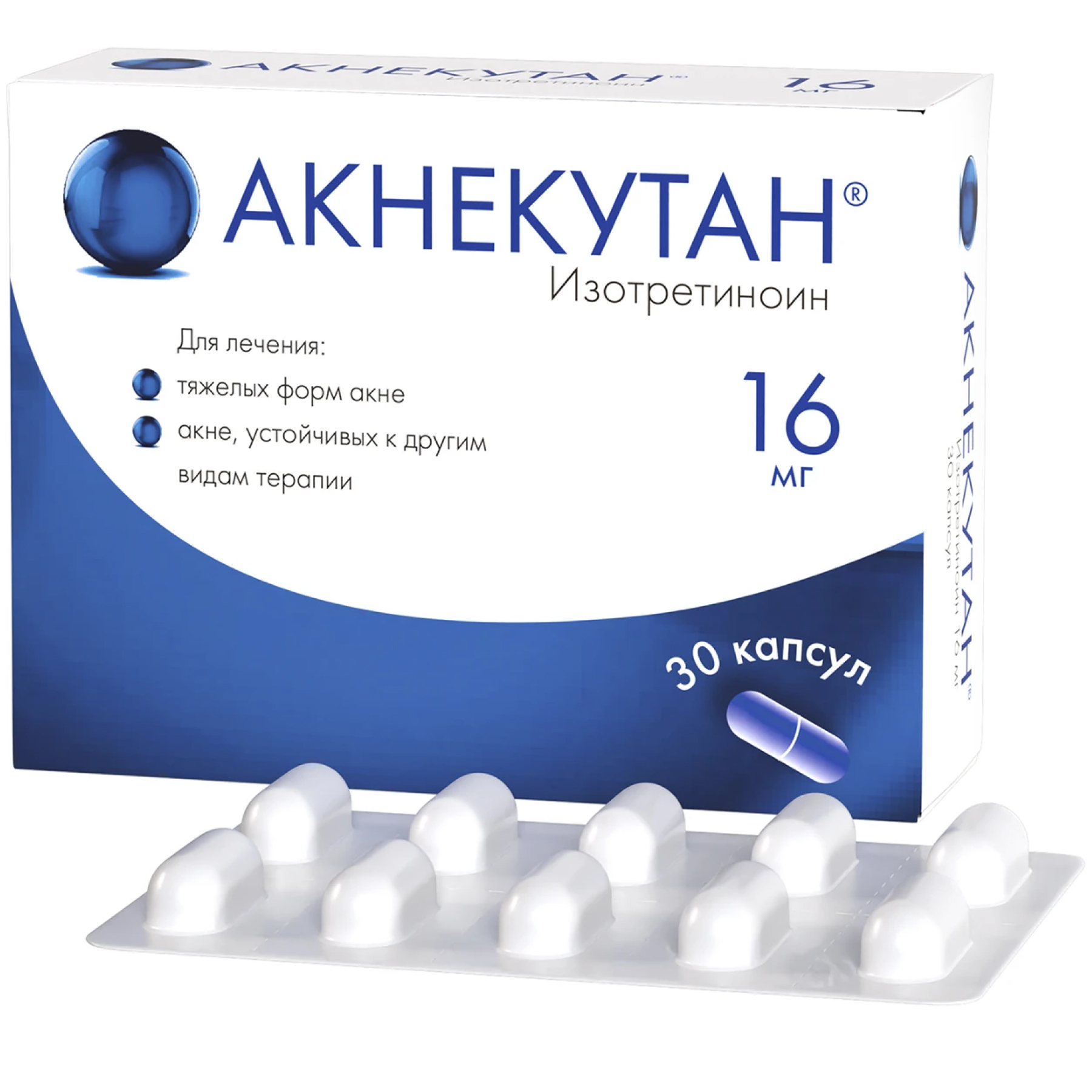 Основное действующее вещество – изотретиноин – по 8 мг или 16 мг на капсулу в зависимости от дозировки.