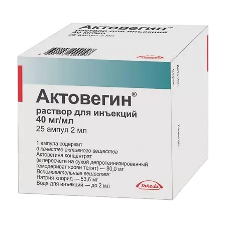 Раствор для инъекций выпускается в ампулах по 1 мл, изготовленных из прозрачного стекла с разным количеством действующего вещества: 80, 200 или 400 мг. В одну контурную упаковку вложено по 5 ампул. В пачках с инструкцией по применению Актовегина может находиться по 1, 2, 5 контурных упаковок.