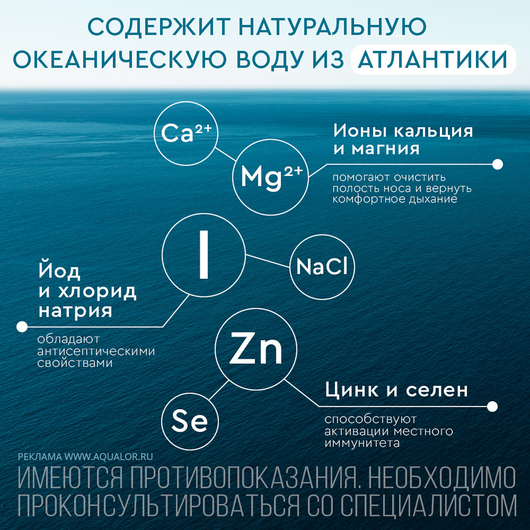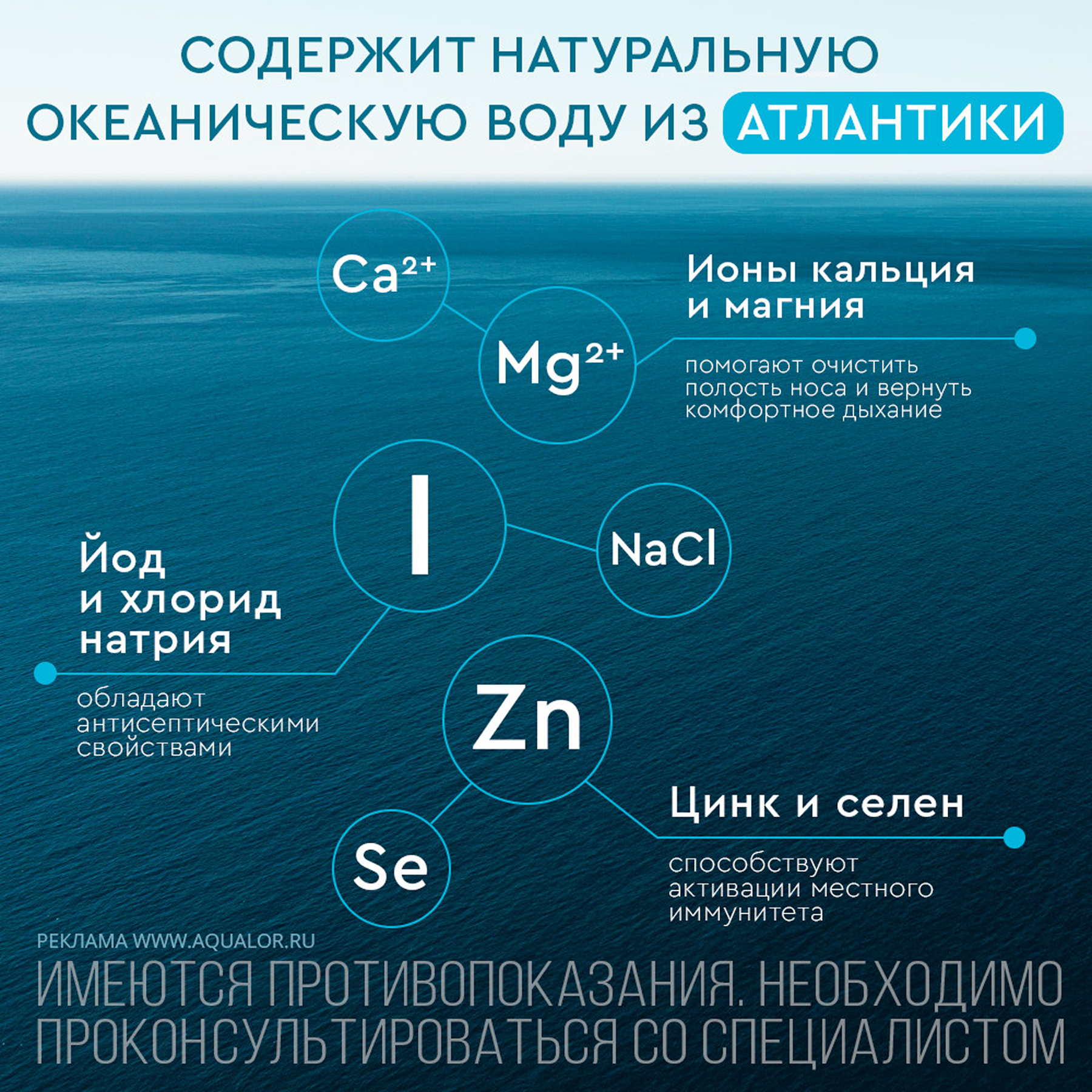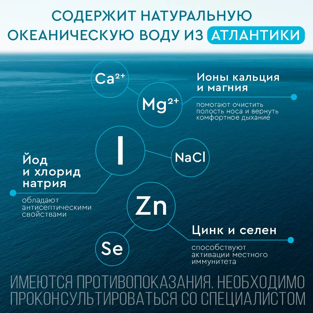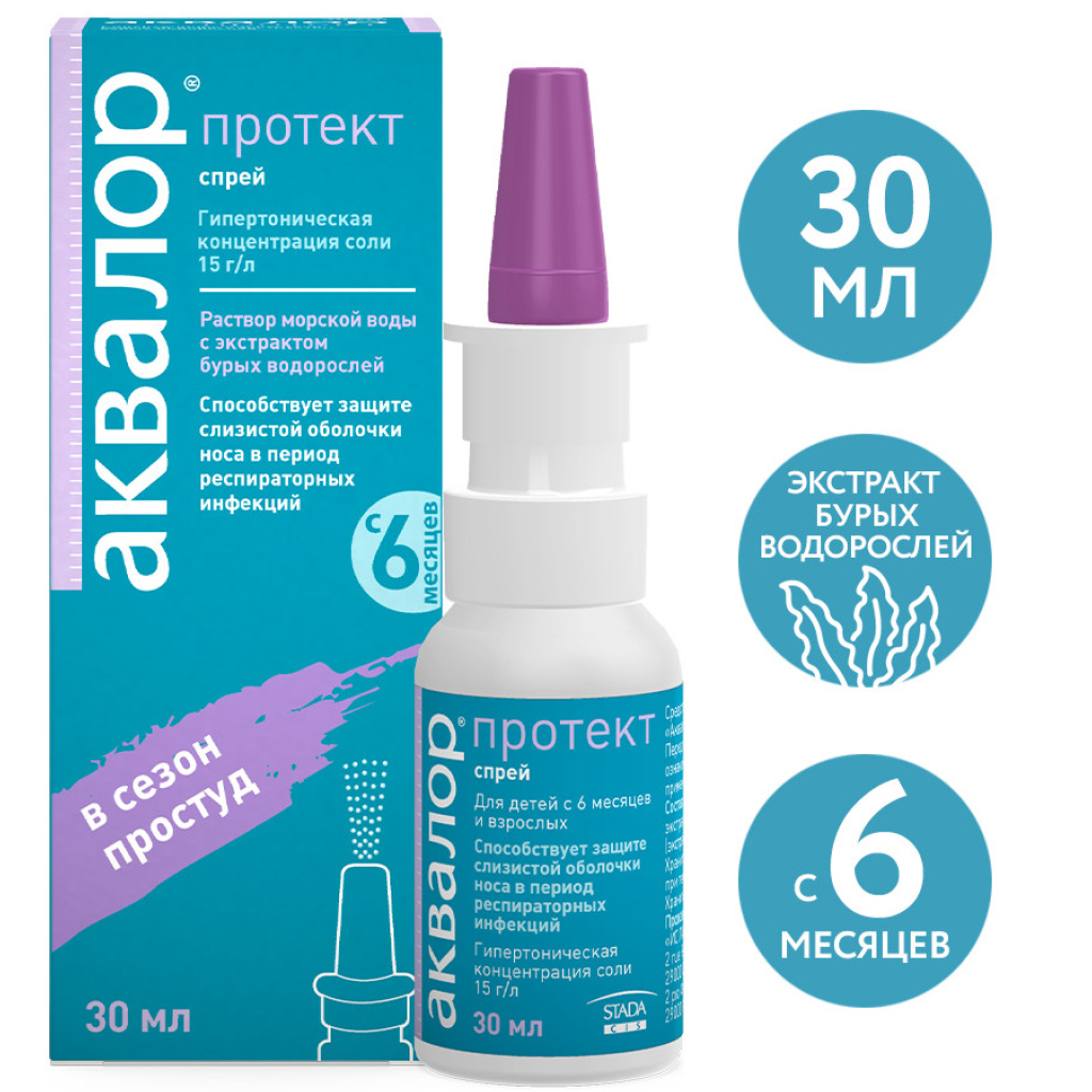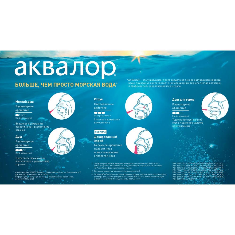 Средство Аквалор содержит: воду очищенную, воду морскую натуральную.