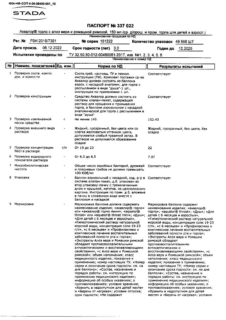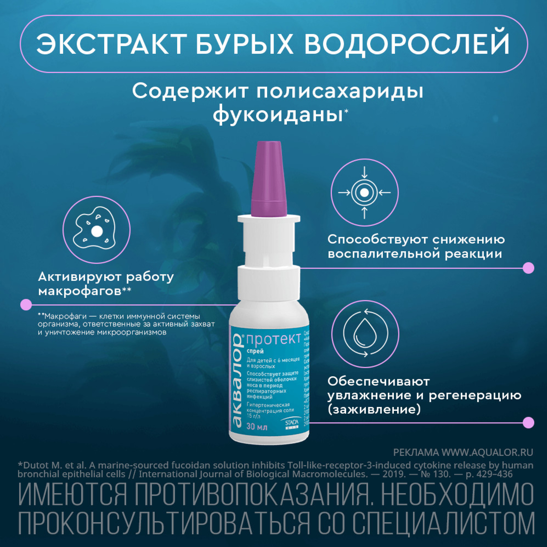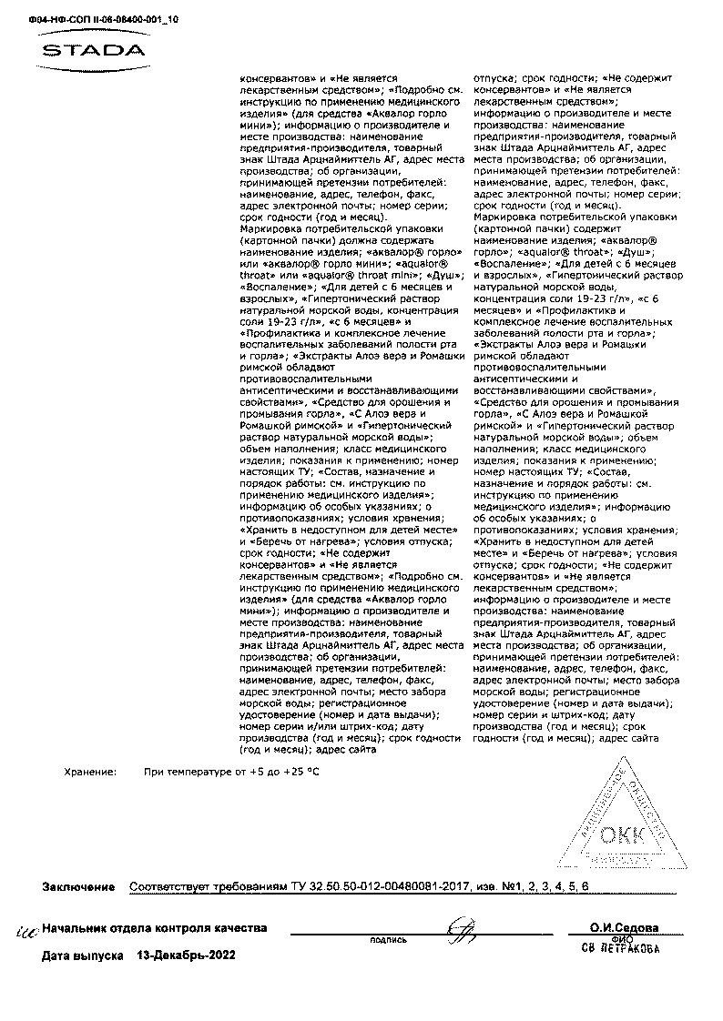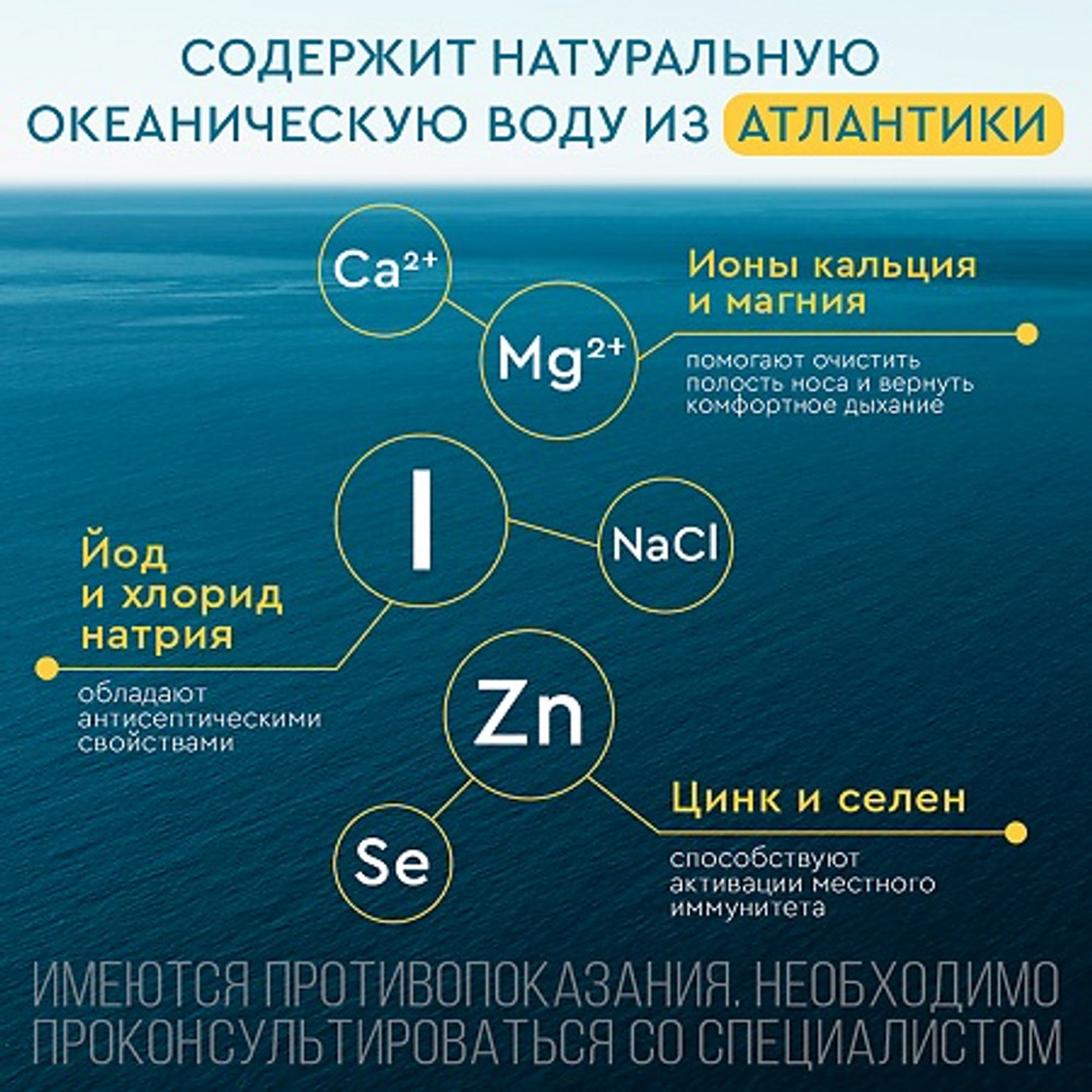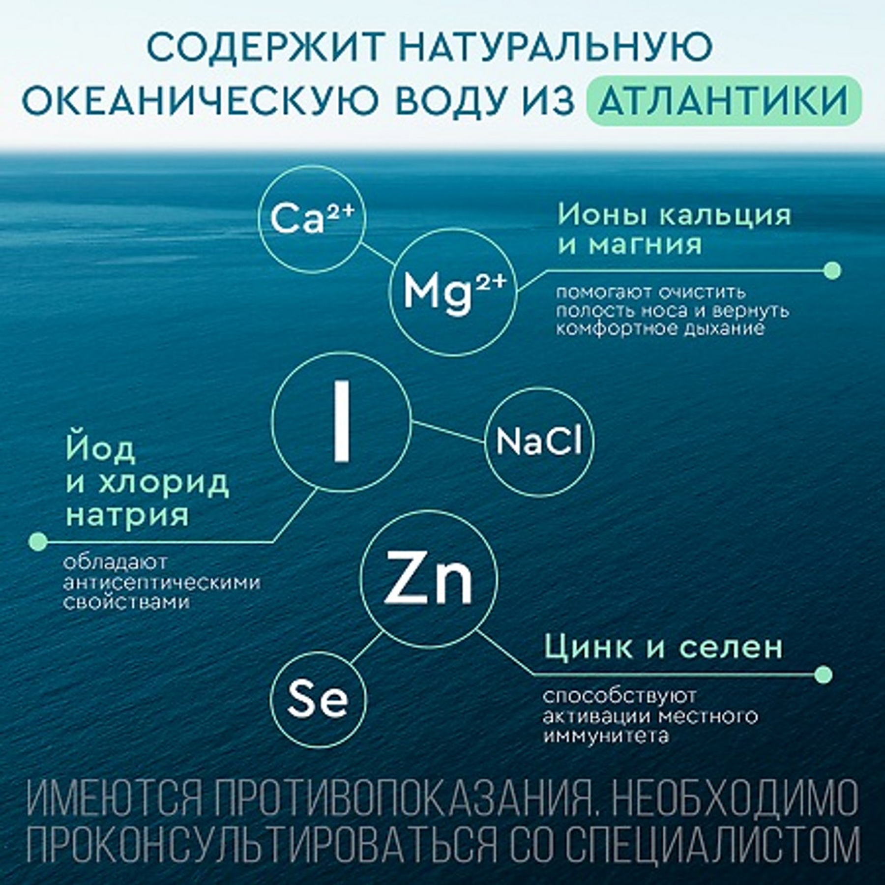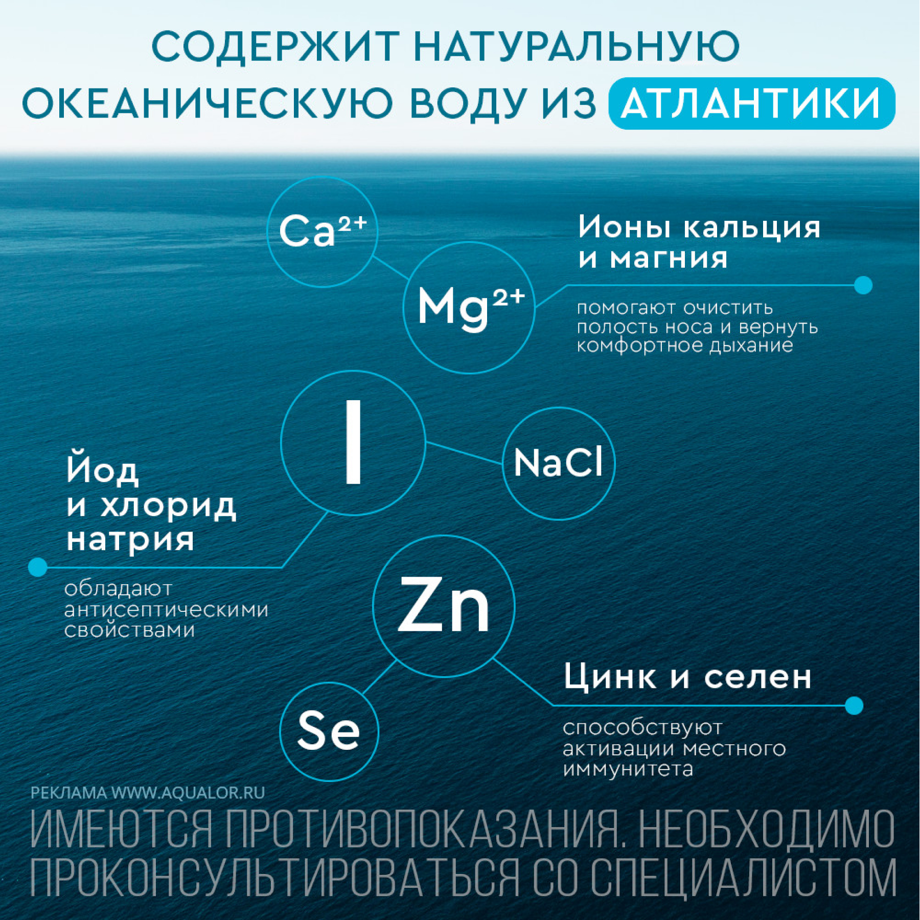 Средство Аквалор содержит: воду очищенную, воду морскую натуральную.