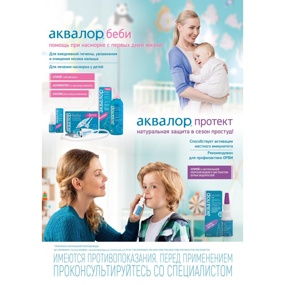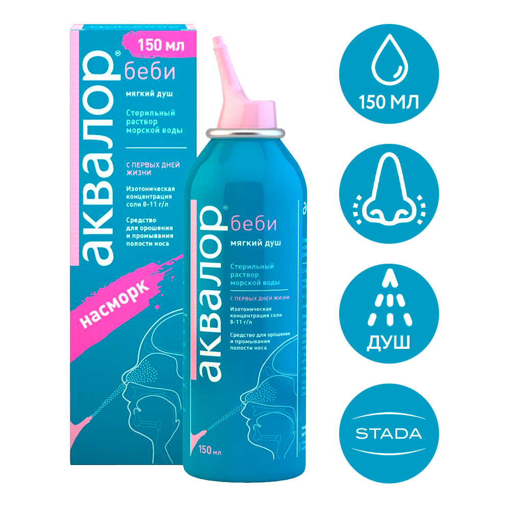 Аквалор – средство, которое используется для орошения и для промывания носовой полости у детей и взрослых. Представляет собой стерильный раствор морской воды – прозрачная бесцветная жидкость без запаха, вкус – слабосоленый.