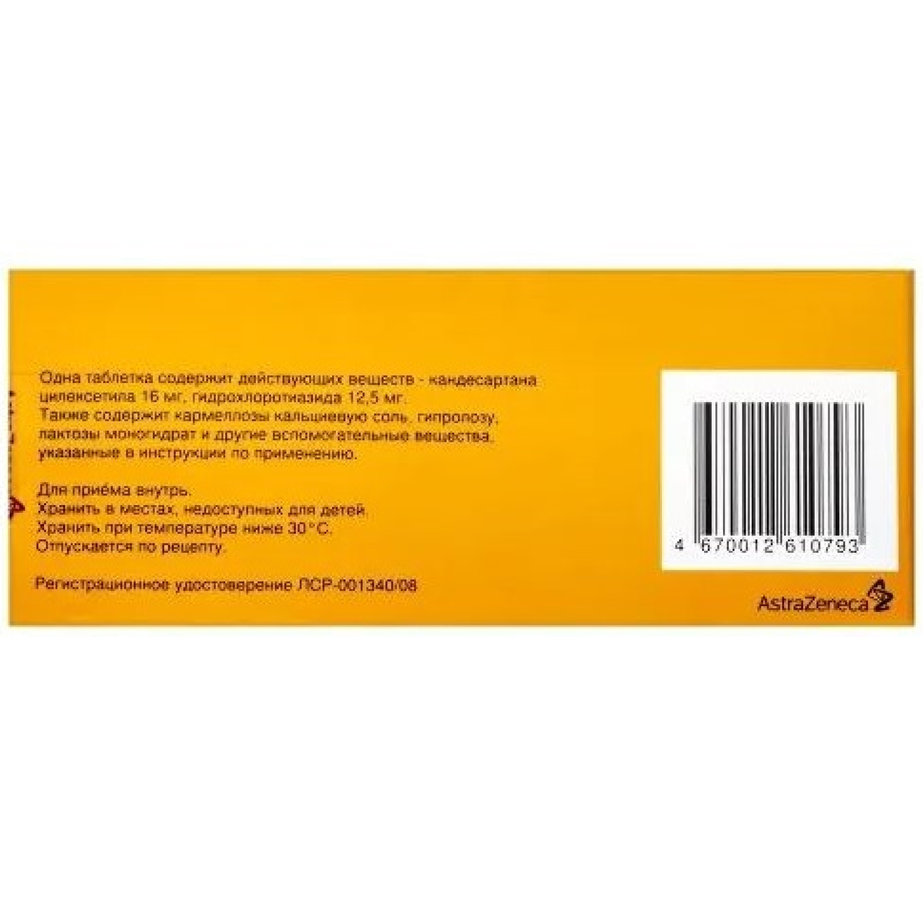В составе Атаканда содержится по 8 и 16 мг кандесартана цилексетила (в зависимости от дозировки) в качестве вспомогательных веществ применяются: