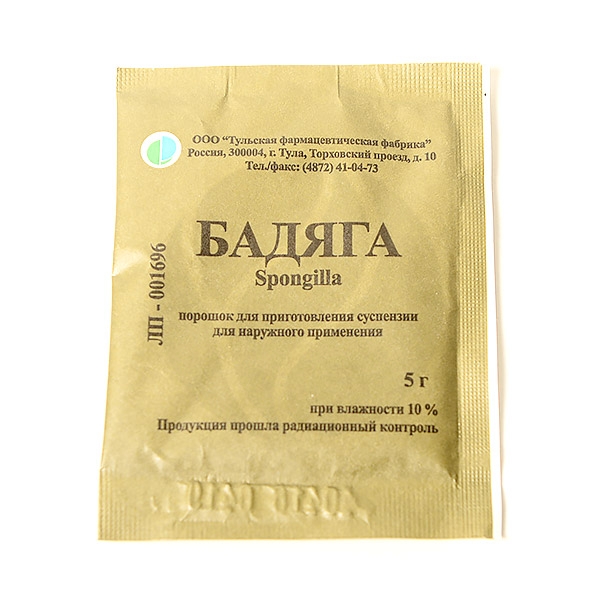 Препарат выпускается многими отечественными фармацевтическими фабриками в виде сильно измельченного мелкокристаллического порошка. Он расфасован в пакетики из вощаной бумаги. Вторичной упаковки у бадяги нет. Инструкция по применению выдается покупателю фармацевтом при расчете на кассе.