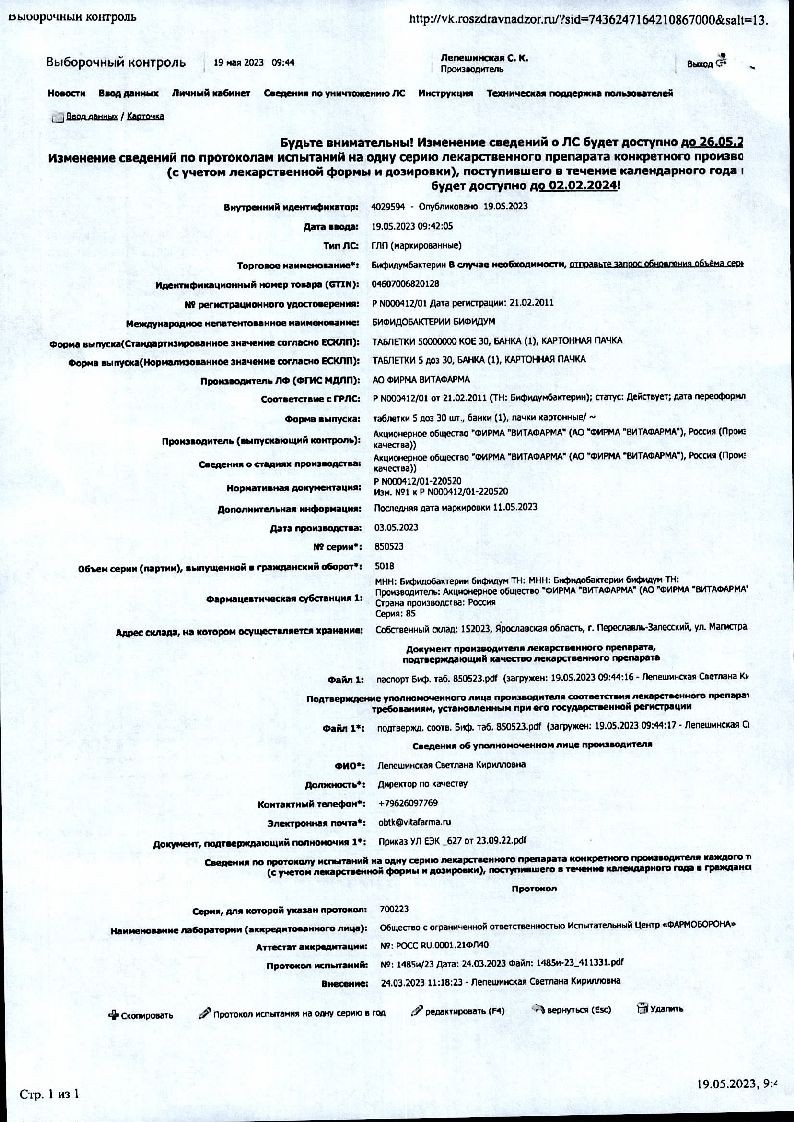Срок годности лекарственного средства — 1 год. Но после вскрытия флакона или пакета его следует использовать незамедлительно. Бифидумбактерин нужно хранить при температуре 10°C в местах, защищенных от прямых солнечных лучей. Доступ маленьких детей к Бифидумбактерину необходимо ограничить.