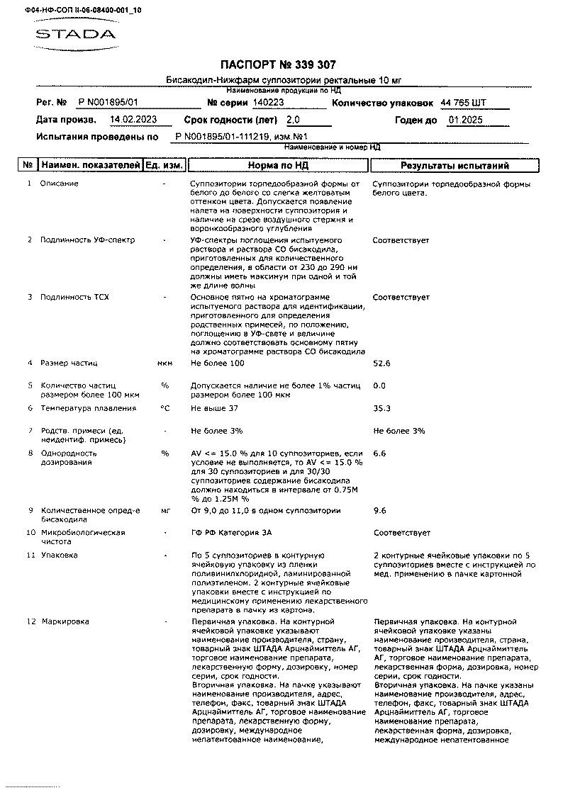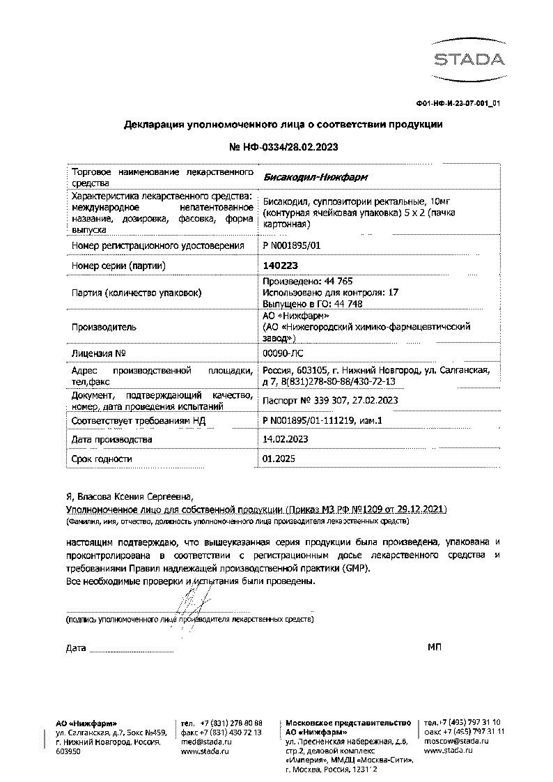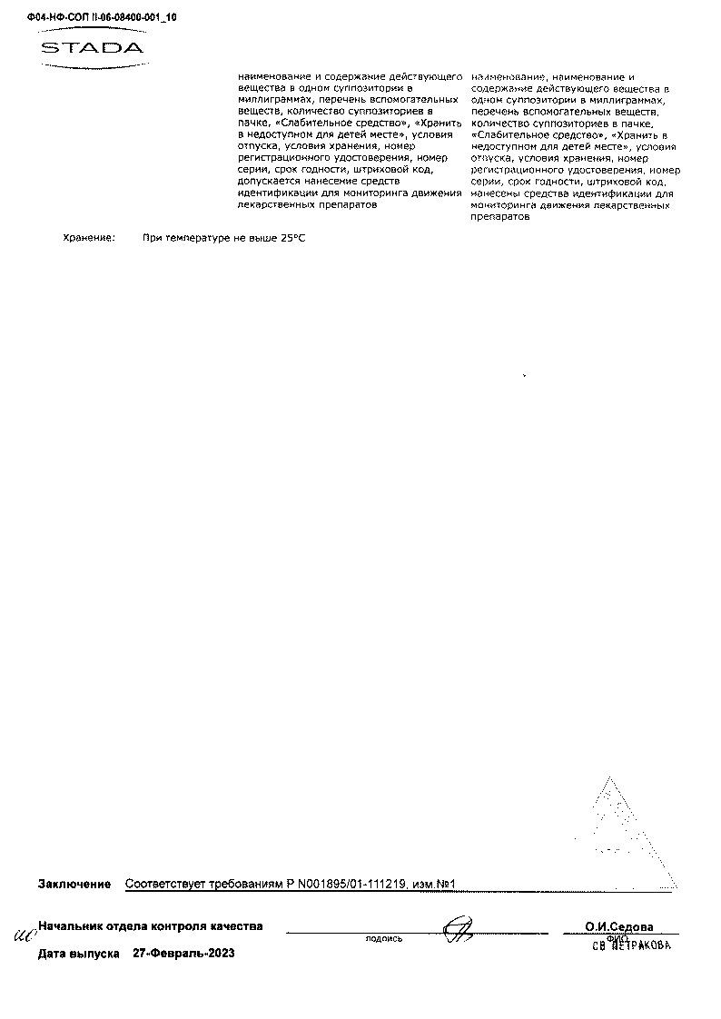 Бисакодил-Нижфарм 10 мг 10 шт суппозитории ректальные