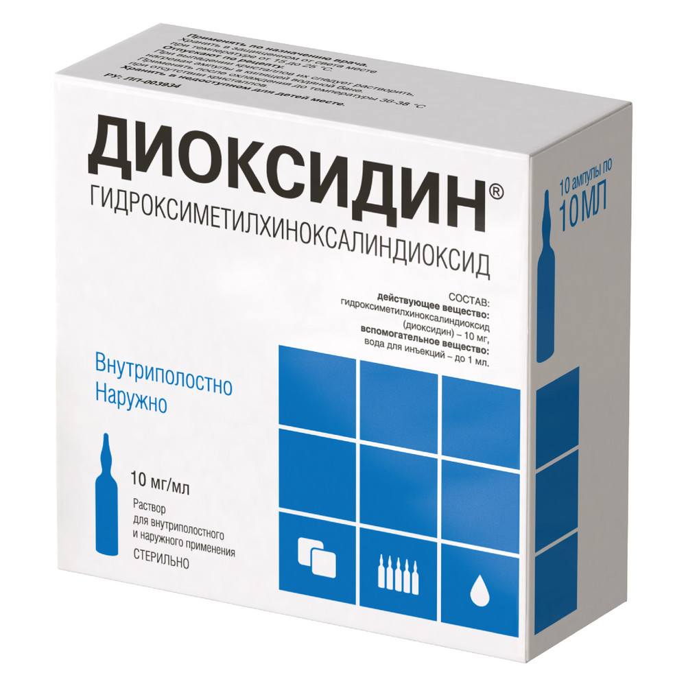 до концентрации 0,1-0,2%. Промывание полостей выполняется с помощью дренажных трубок, катетеров или шприцов 1% раствором. Количество раствора варьируется в зависимости от объема полости от 10 до 50 мл. Он применяется и для удаления гнойного экссудата из глубоких ран. Сначала они очищаются от омертвевших тканей, а затем накладывается стерильная салфетка, пропитанная 1% раствором Диоксидина. Длительность терапевтического курса — 2-3 недели. Для обработки инфицированных ран мазь используется следующим образом: