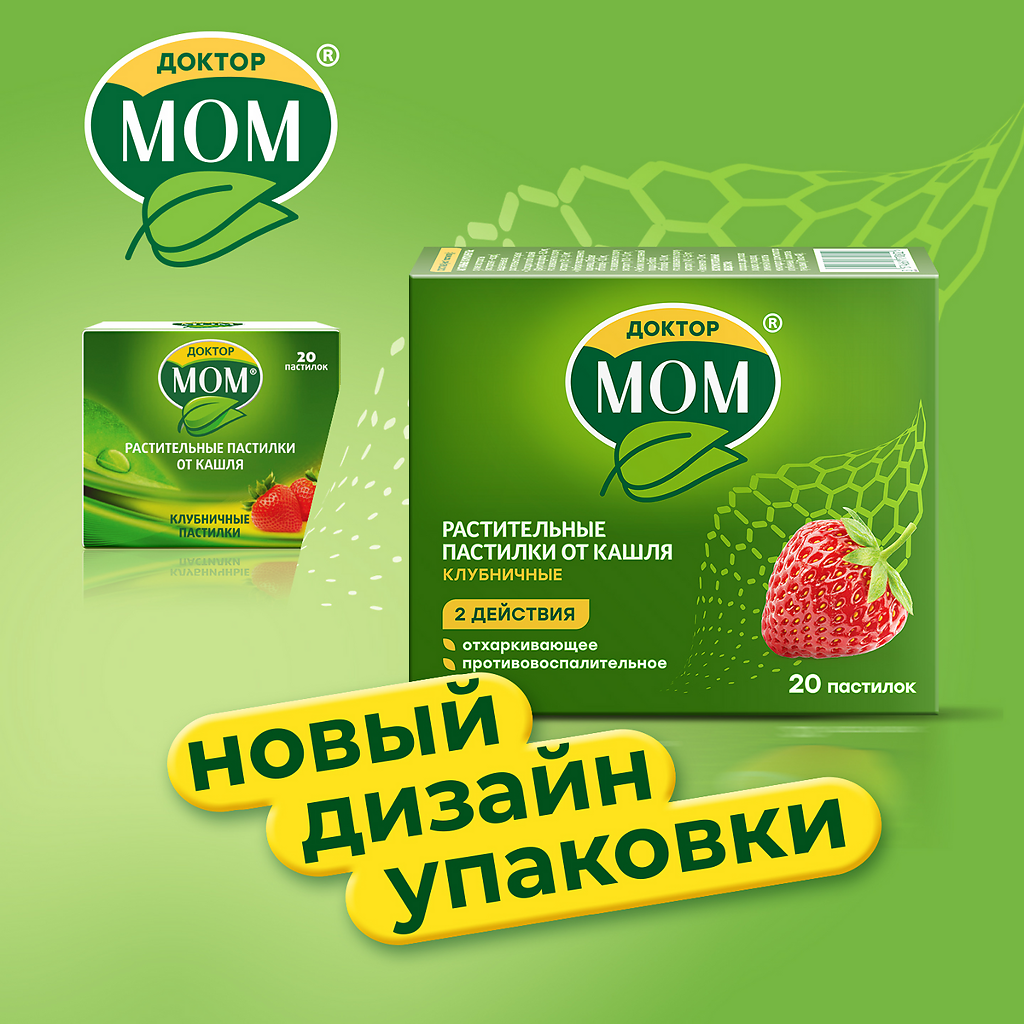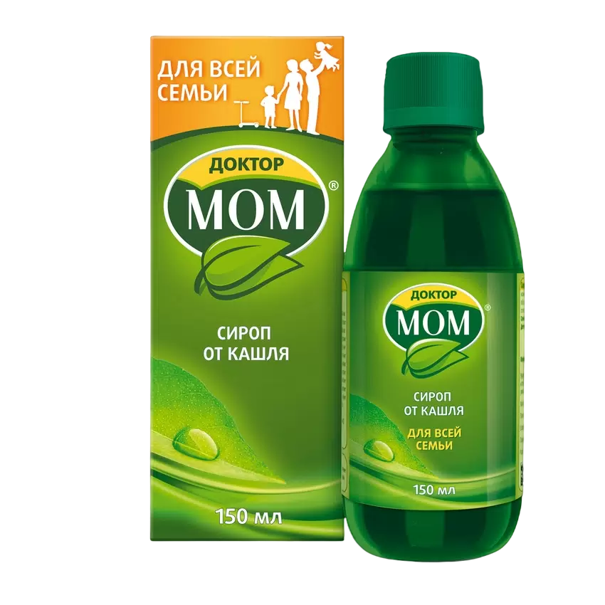 Доктор МОМ в аптеках можно купить в виде леденцов, мази, пастилок, таблеток и сиропа. Сиропы выпускаются в форме флаконов из полиэтилентерефталата зеленого цвета, укупоренные алюминиевой или пластиковой крышкой с контролем первого вскрытия в комплекте с мерным стаканчиком из полипропилена. Все лекарственные препараты Доктор МОМ сопровождаются инструкцией по применению.