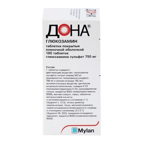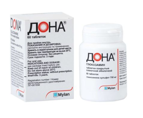 Дона предназначена в качестве стимулятора, препарата для репарации тканей. Хондропротектор имеет противовоспалительное, обезболивающее действие, восполняющий постоянный недостаток глюкозамина, активизирующий связывание цепочек протеогликанов и гиалуроновой кислоты в природной жидкости суставной сумки. Лекарство повышает проницаемость суставной сумки, катализирует ферментативные функции в клетках синовиальной жидкости и хряща. Нормализует процессы отложения серы при формировании хондроитинсерной кислоты.
