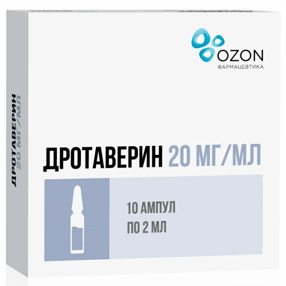 Дротаверин раствор для инъекций 20мг/мл амп 2мл №10