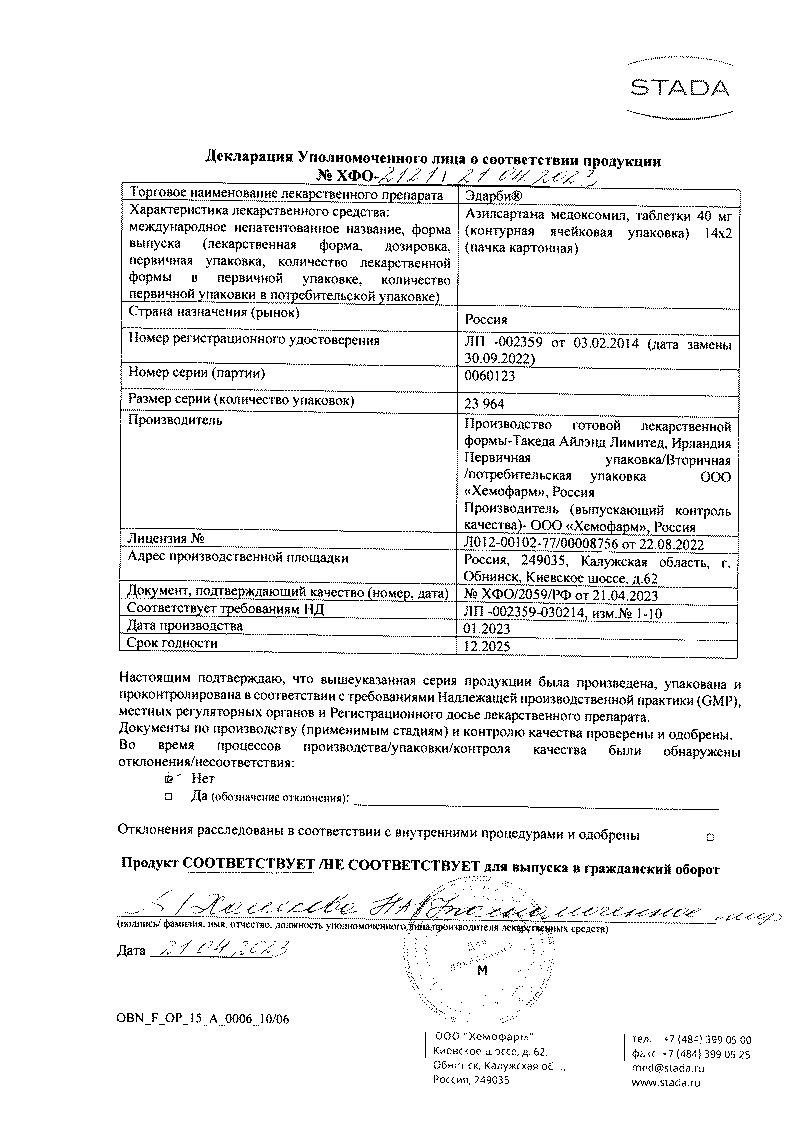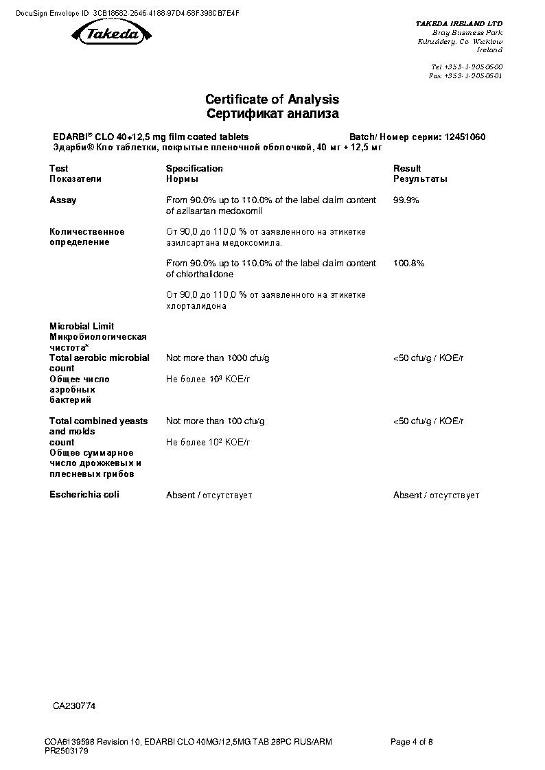 Эдарби Кло 40 мг+12,5 мг 28 шт таблетки покрытые пленочной оболочкой