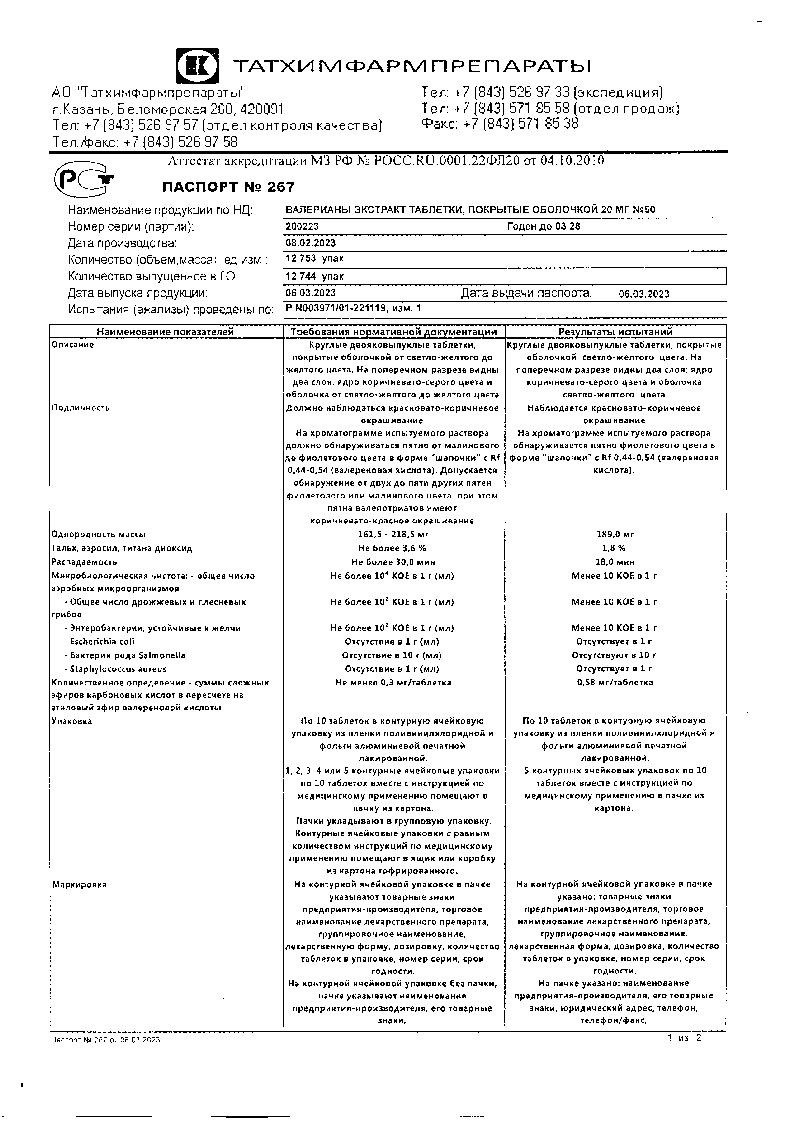 Валерианы Экстракт таб по 20мг №50 (Татхимфарм)