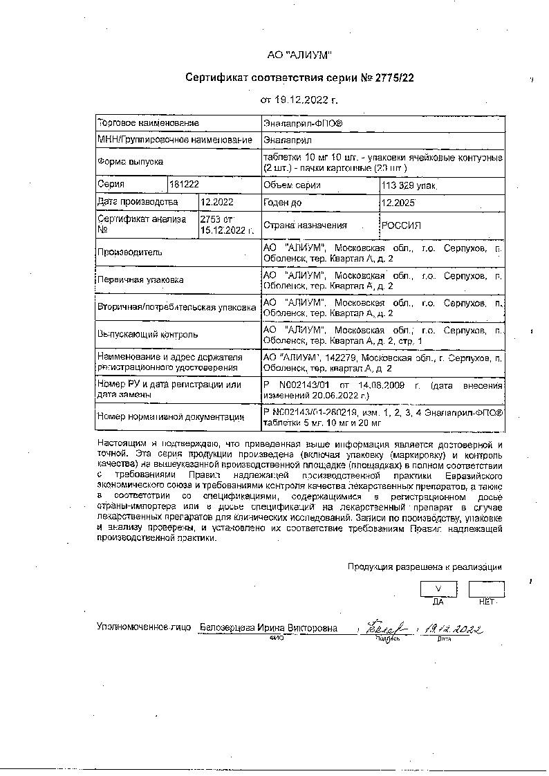 Эналаприл является пролекарством, после приема которого в организме пациента образуется активное вещество эналаприат. Предположительно, его действие связано с конкурентным подавлением регулятора активности ренин-ангиотензивной системы, играющего ключевую роль в регуляции кровяного давления. . Вследствие этого скорость перехода ангестизиона I в стадию II снижается. Ангестизион II оказывает сужающее действие на сосуды и ускоряет выработку альдостерона в надпочечниках.