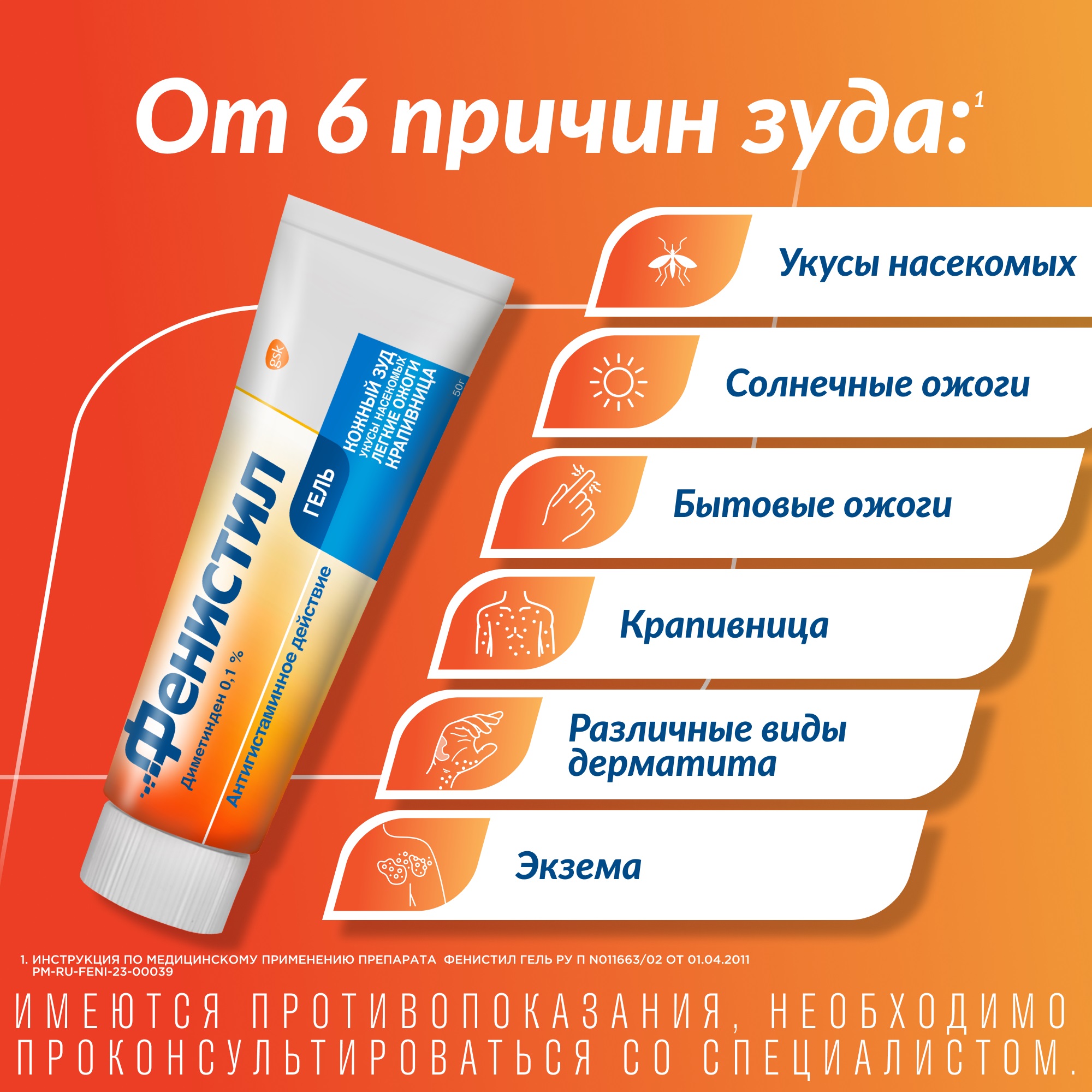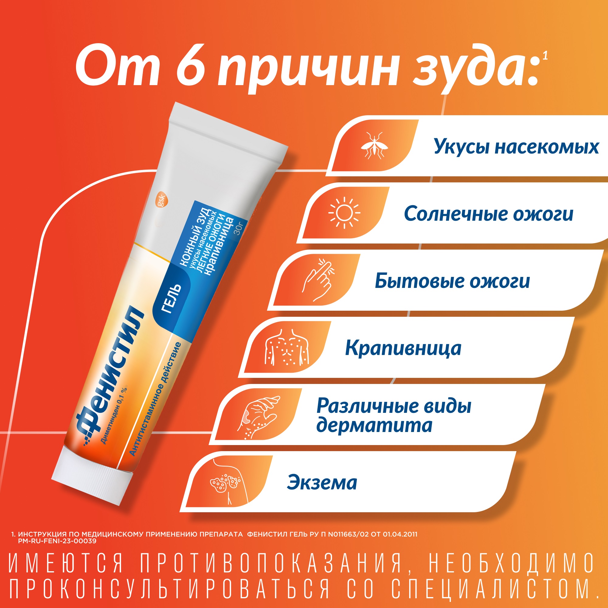 В клинической практике отмечены случаи местных побочных эффектов Фенистила. Их ведущие симптомы — раздражение и отечность кожи, воспаление, болезненность, сыпь, жжение. Наблюдалось и развитие системных побочных реакций. Проявляются они следующим образом: