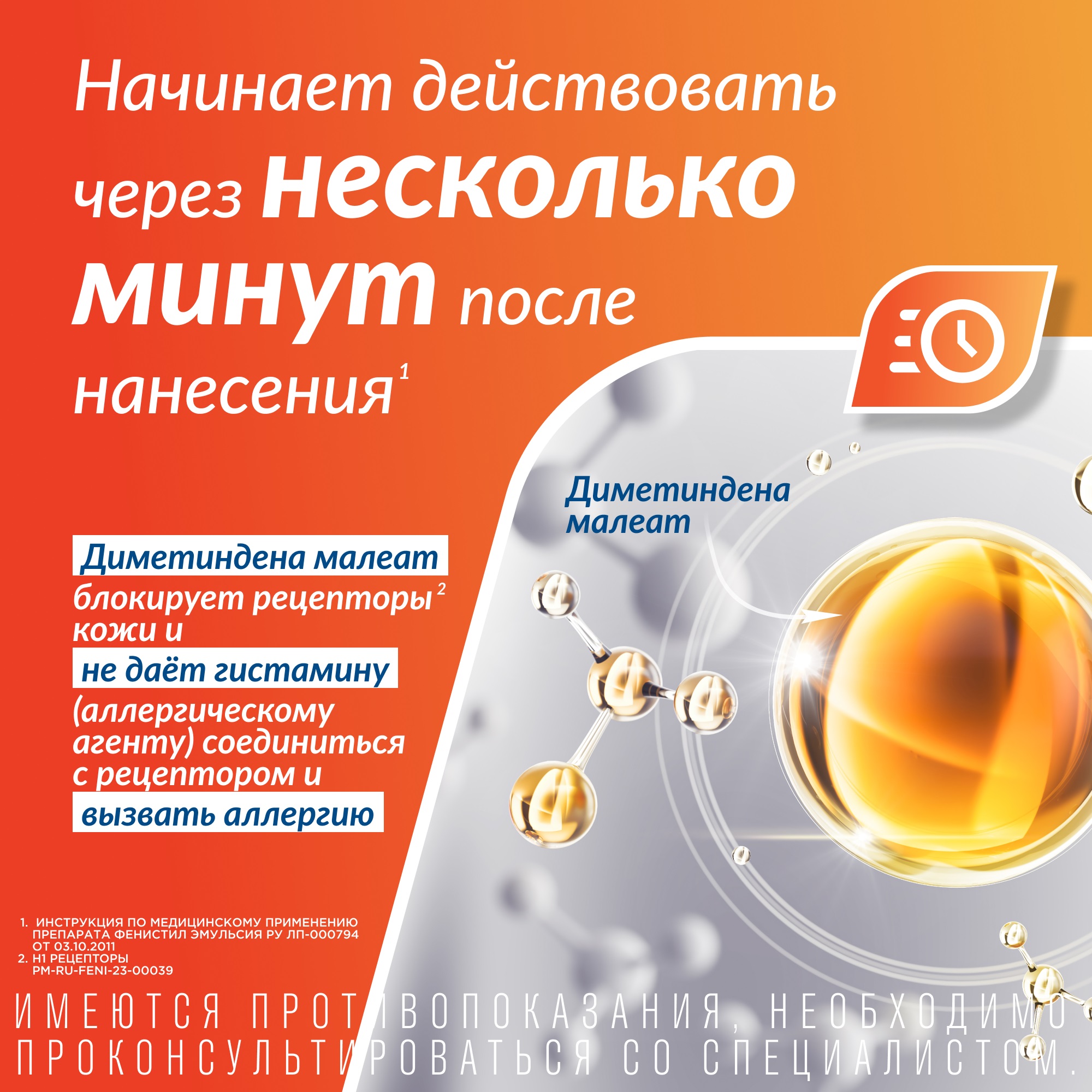 Активный ингредиент всех лекарственных форм Фенистила — диметинден, который независимо от пути введения блокирует рецепторы, чувствительные к гистамину. Именно выброс этого медиатора аллергических реакций немедленного типа в системный кровоток и становится причиной кожного зуда, заложенности носа, слезотечения. Диметинден — неизбирательный антагонист гистамина, конкурирует с ним за H1-рецепторы. Характерны для него и другие фармакологические свойства: