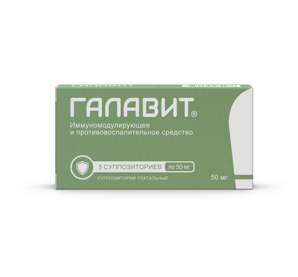 Галавит выпускается в форме ректальных торпедообразных суппозиториев белого или слегка кремового оттенка из абсолютно гомогенного плотного вещества. Укладывается по 5 штук в контурные ячейковые упаковки. В каждой картонной пачке находится по 1 или 2 ячейковые упаковки и инструкция по применению свечей Галавит.