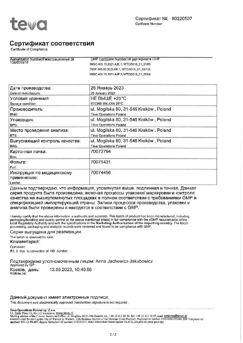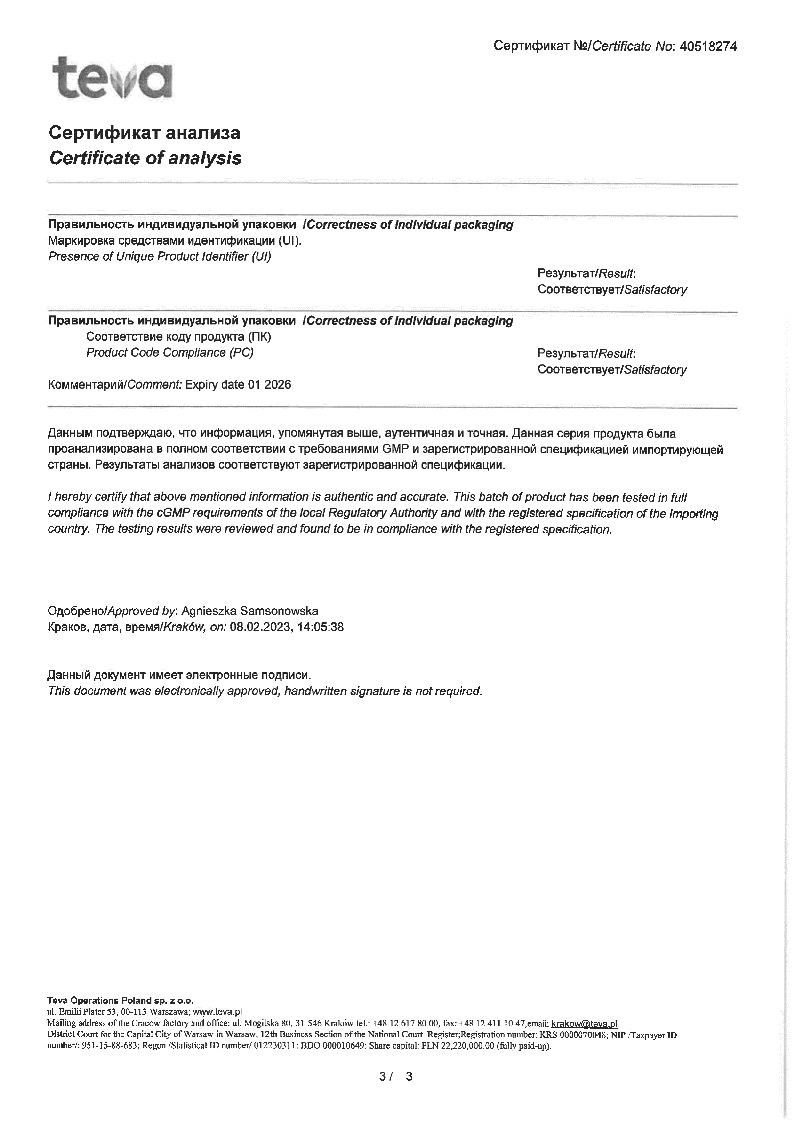 Действующее вещество: