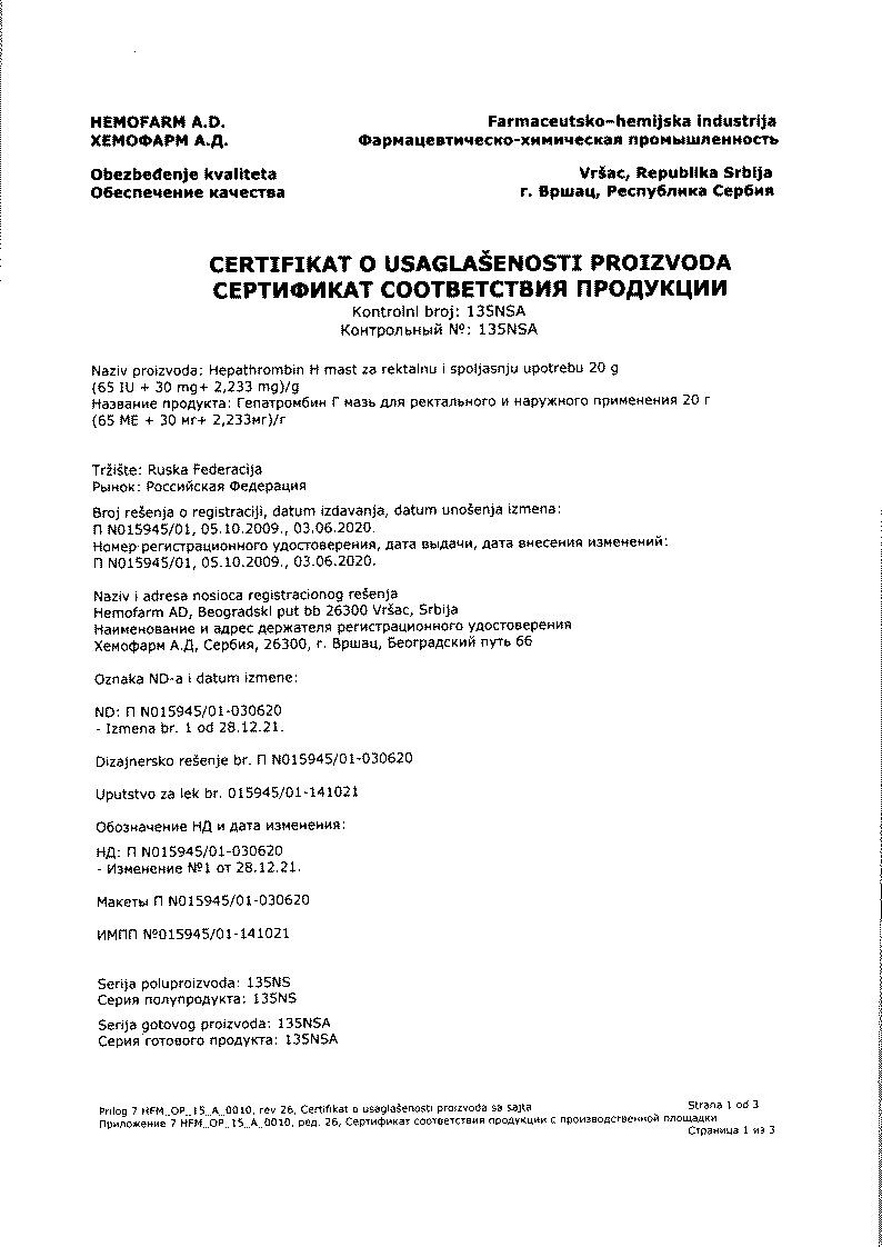 Гепатромбин Г мазь для наружного и ректального применения 20г + компл с наконеч