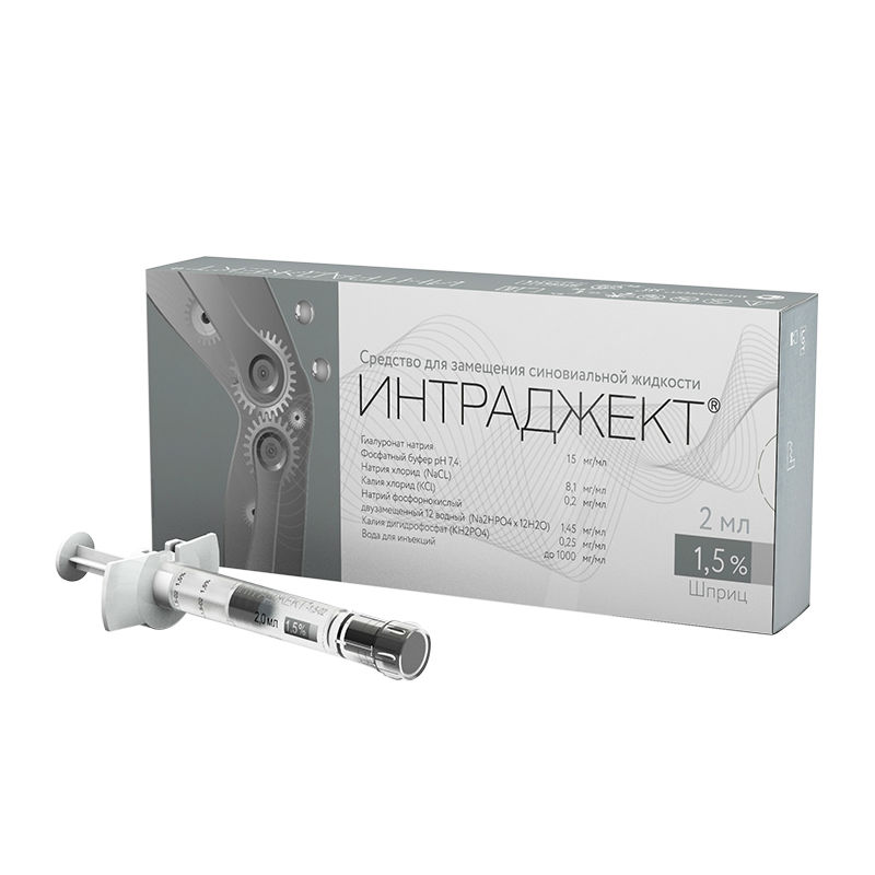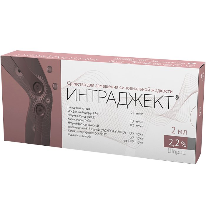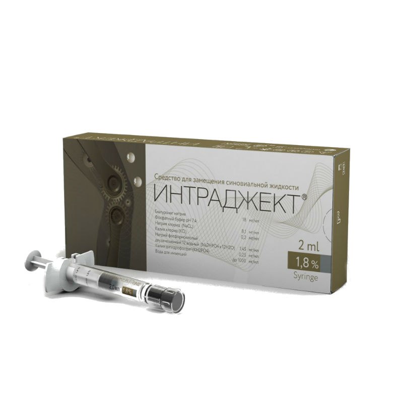 Интраджект – вещество, предназначенное для замены и дополнения объема синовиальной жидкости сустава. Вводится при помощи иглы непосредственно в сустав. Устраняет малоподвижность, болевой синдром, применяется для терапии остеоартритов и остеоартрозов, травматических нарушений суставов. Используется для пациентов, которые подвергают суставы значительным физическим нагрузкам и повреждениям. Стоимость средства в аптеках зависит от дозировки действующего вещества.