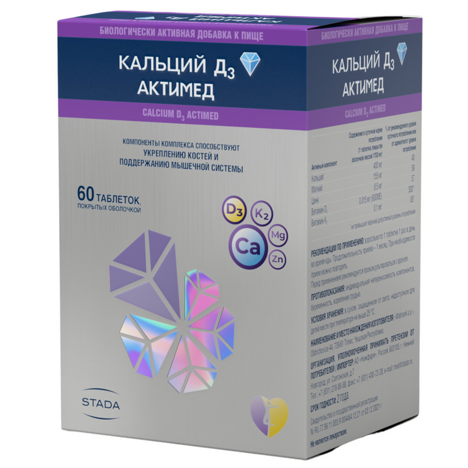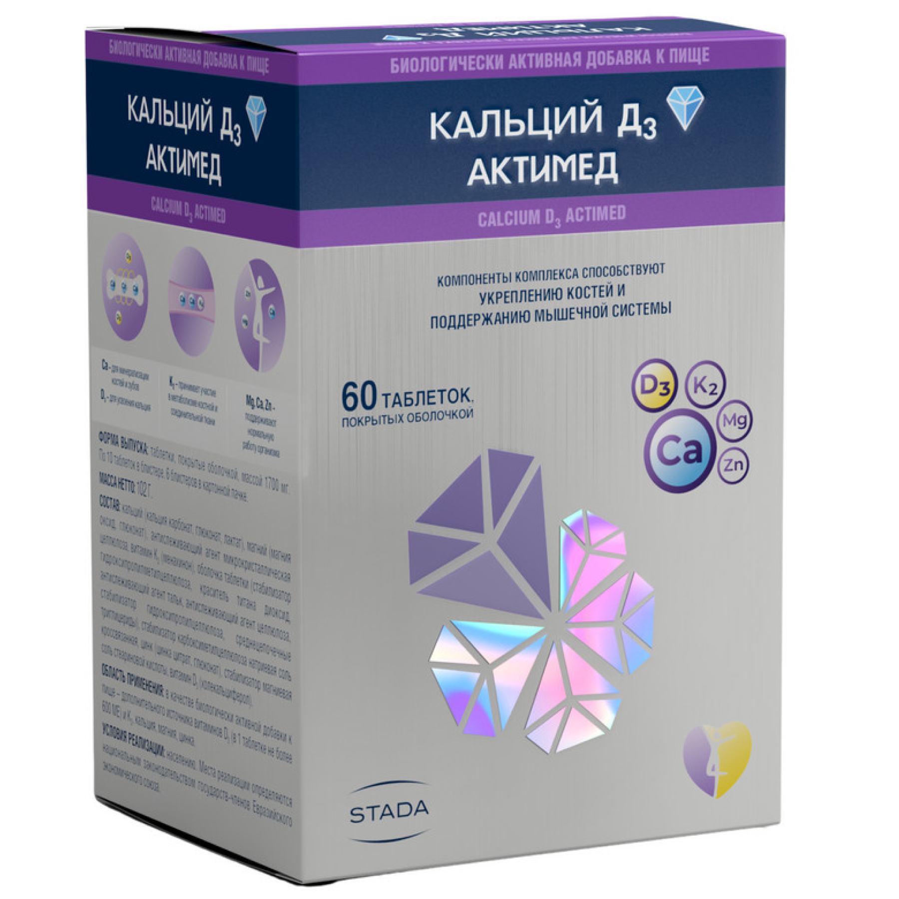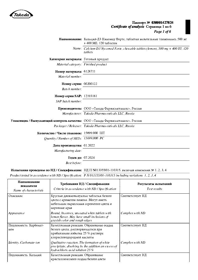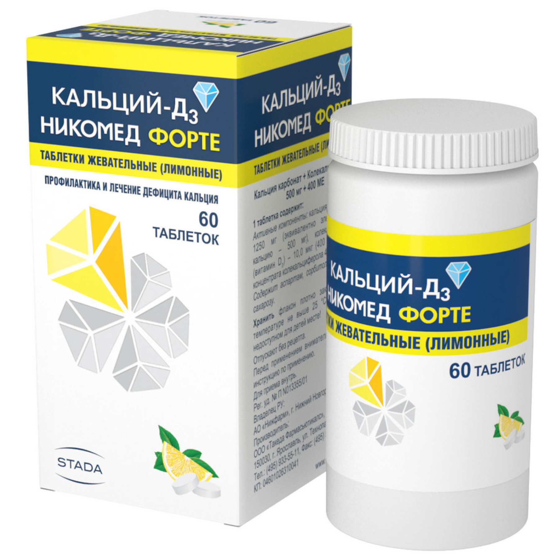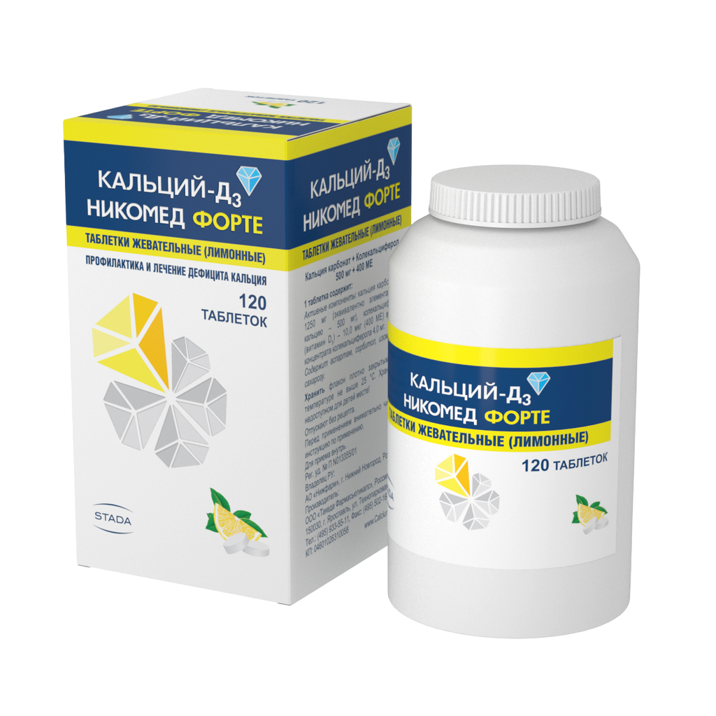 Кальций-Д3 — фармакологическая разработка швейцарской компании Nycomed Pharma. Препарат выпускается ею в виде двояковыпуклых жевательных таблеток, крупнозернистых на изломе. У них насыщенный запах, приятный вкус, нет рисок и оболочек. Наличие небольших вкраплений и неровных краев допустимо. Производитель фасует таблетки в пластиковые белые флаконы с навинчивающимися крышками. В свою очередь они вложены в картонные коробки с фирменным логотипом вместе с подробными инструкциями по применению.